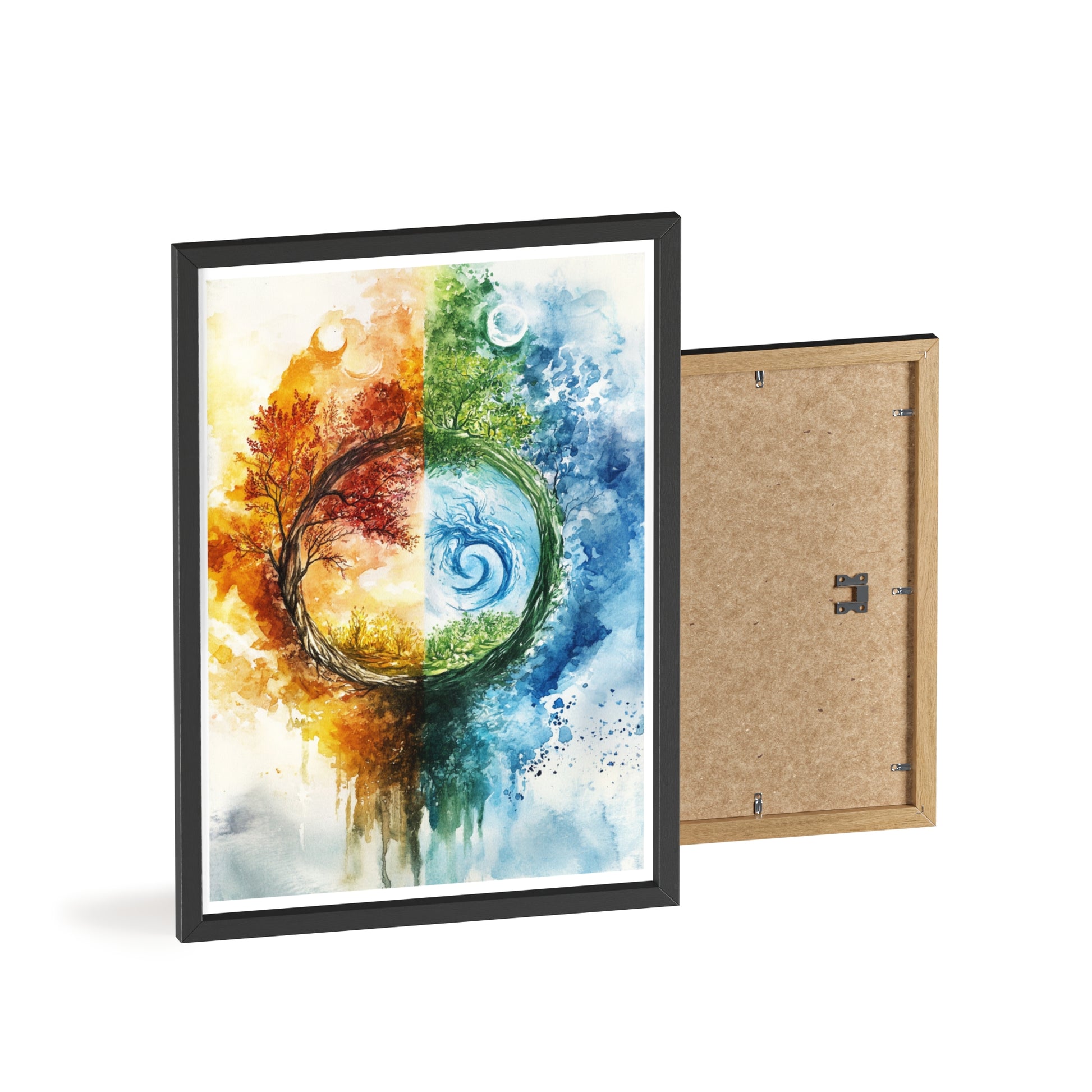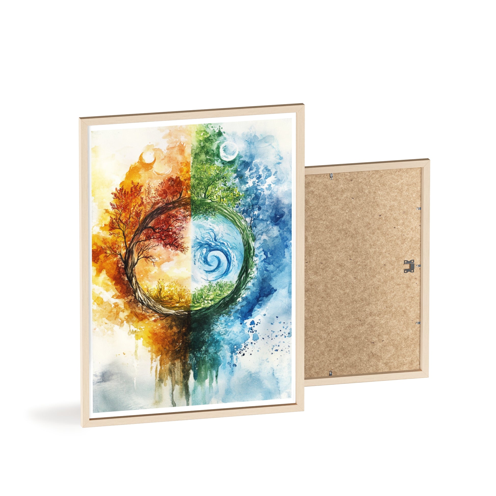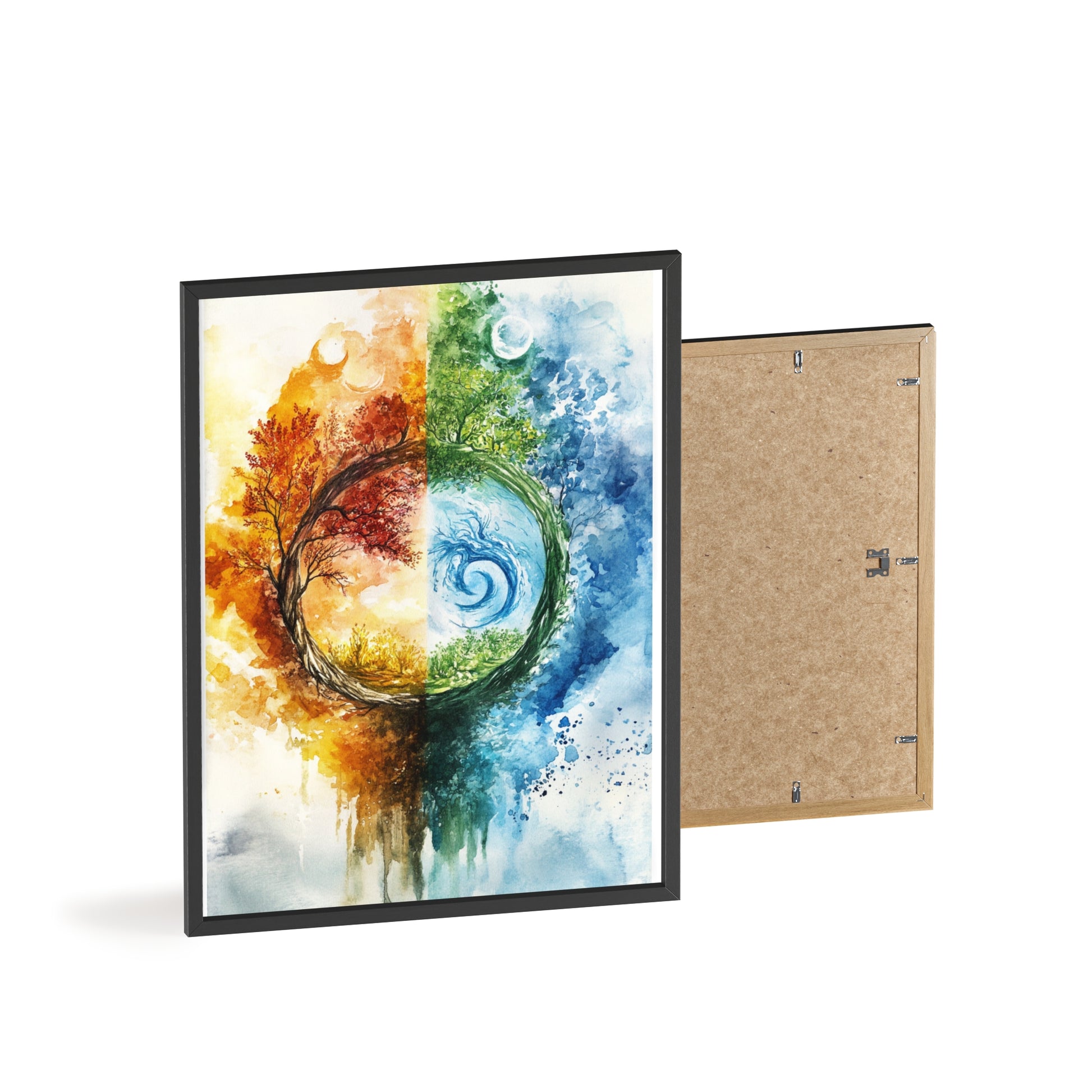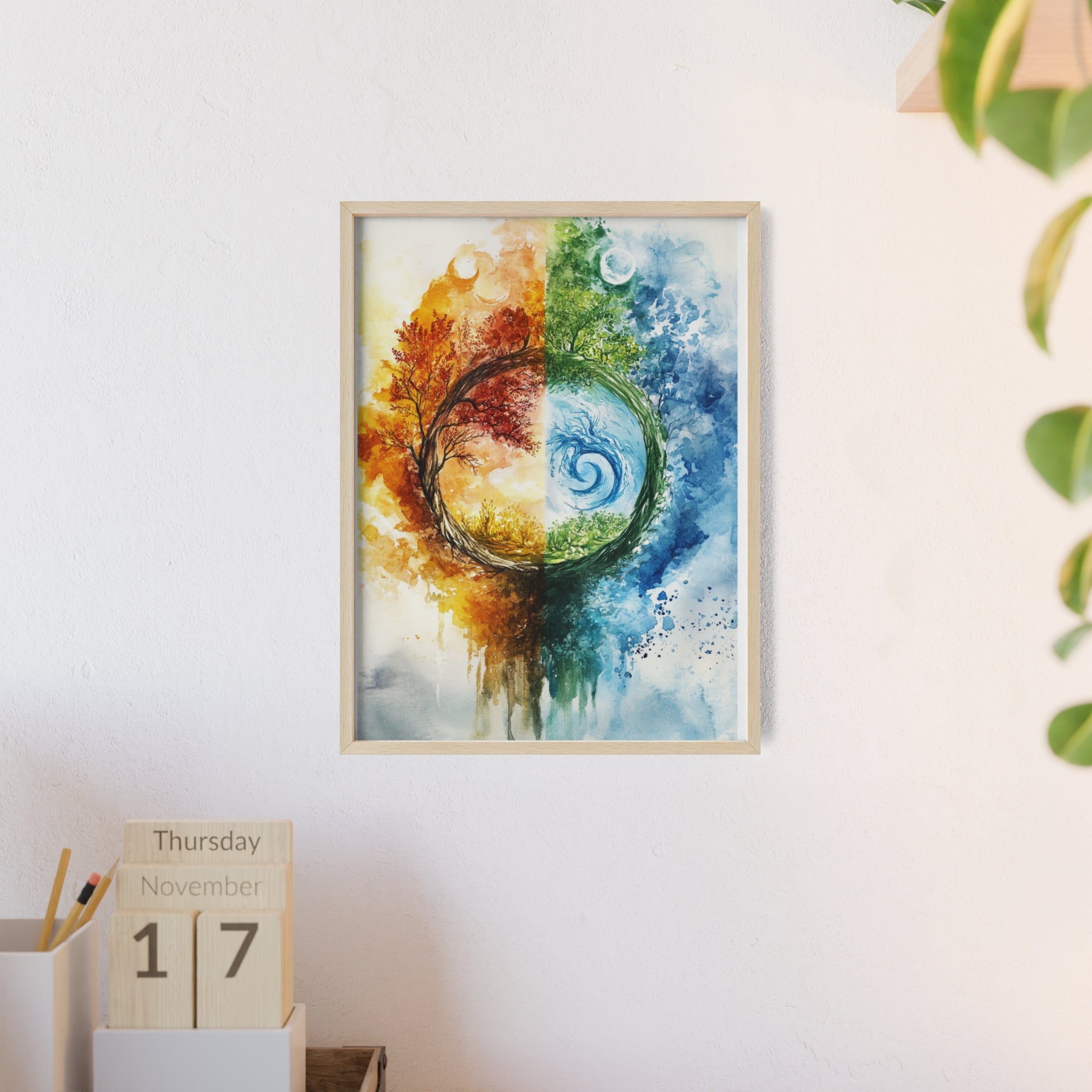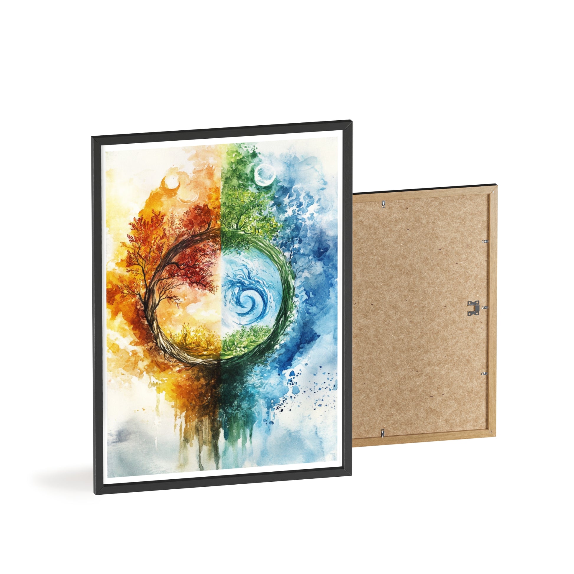 „Die Vier Elemente“ steht für das Zusammenspiel aller Lebenskräfte – Feuer für Energie, Wasser für Emotion, Erde für Stabilität und Luft für Freiheit. Dieses Poster bringt Balance, Lebendigkeit und natürliche Harmonie in dein Zuhause.