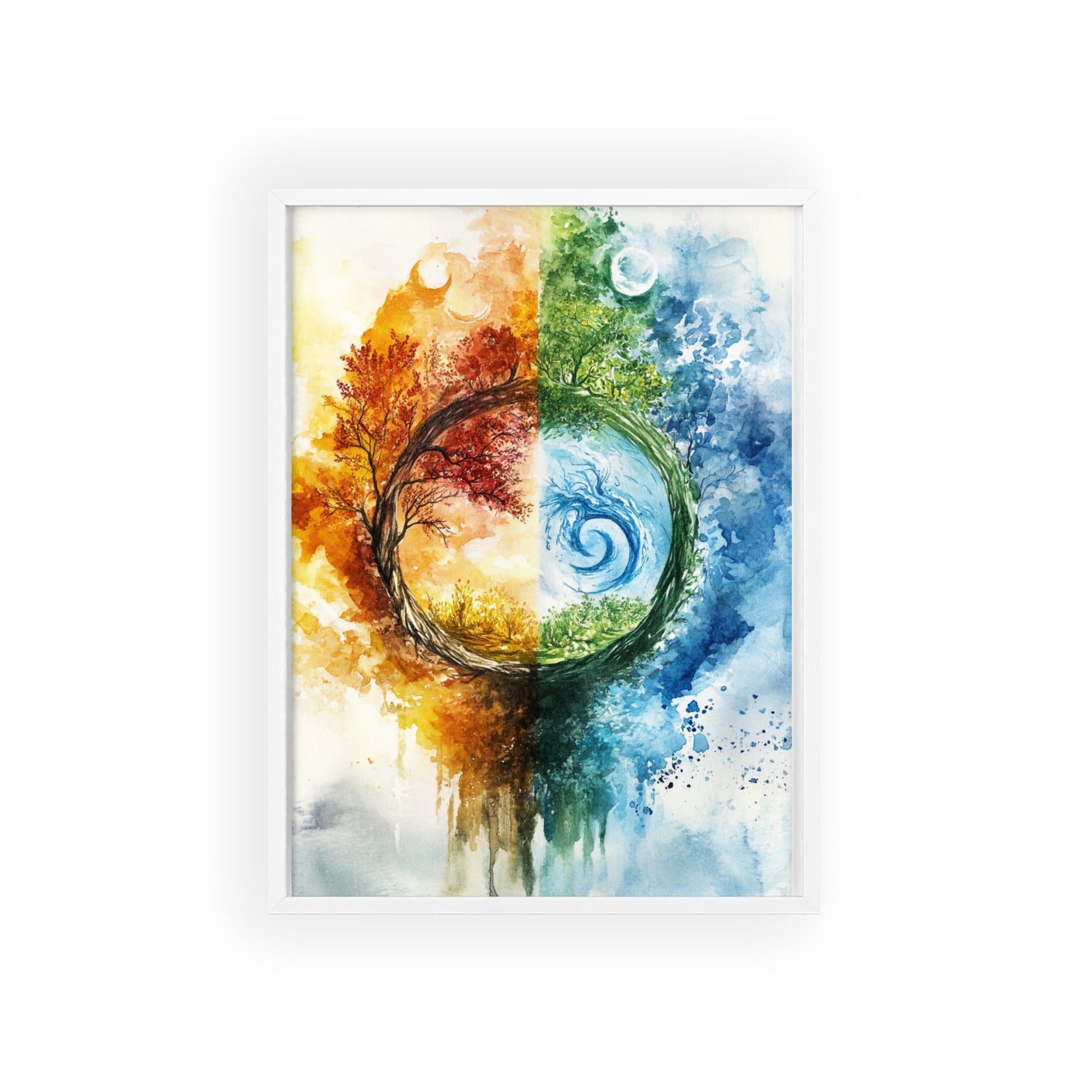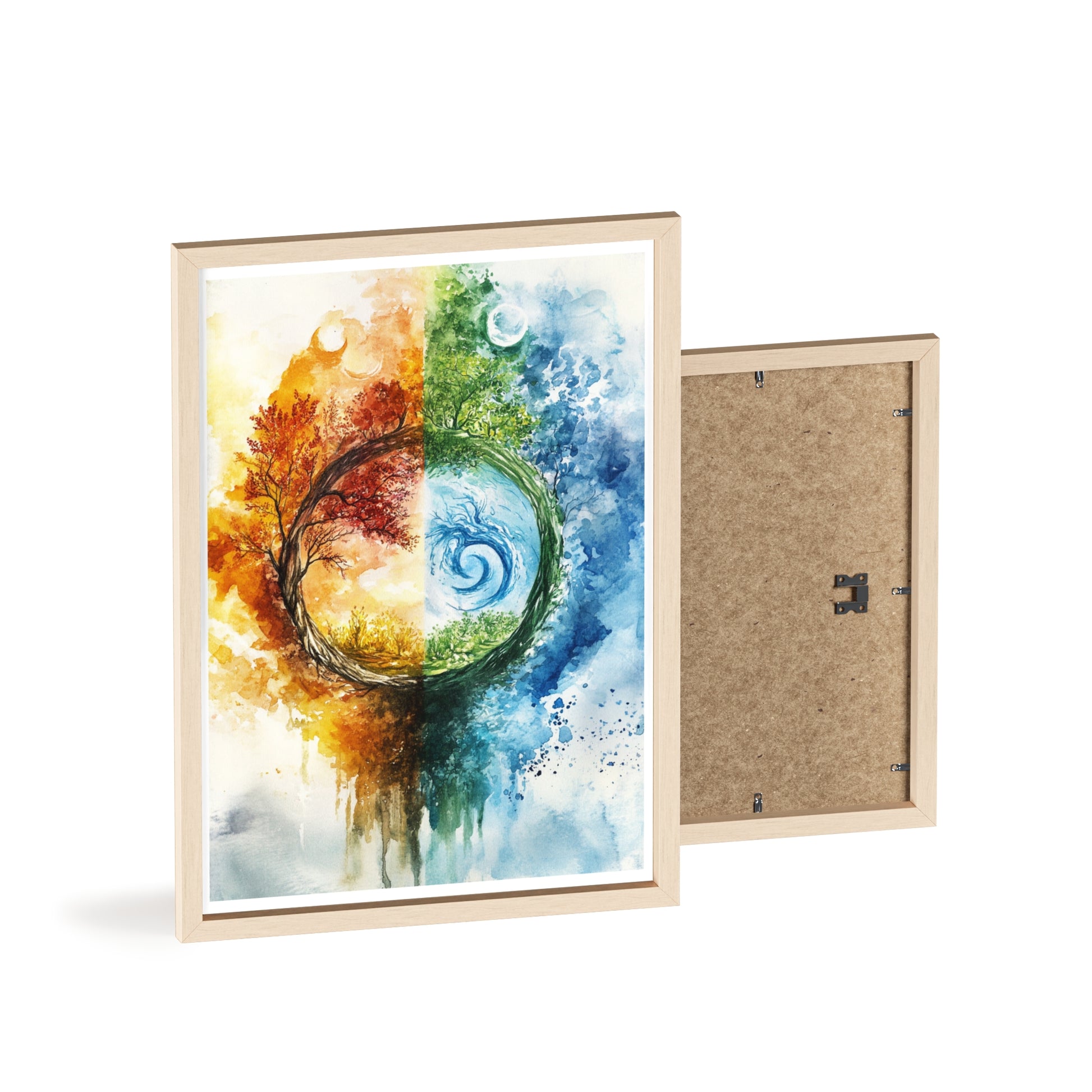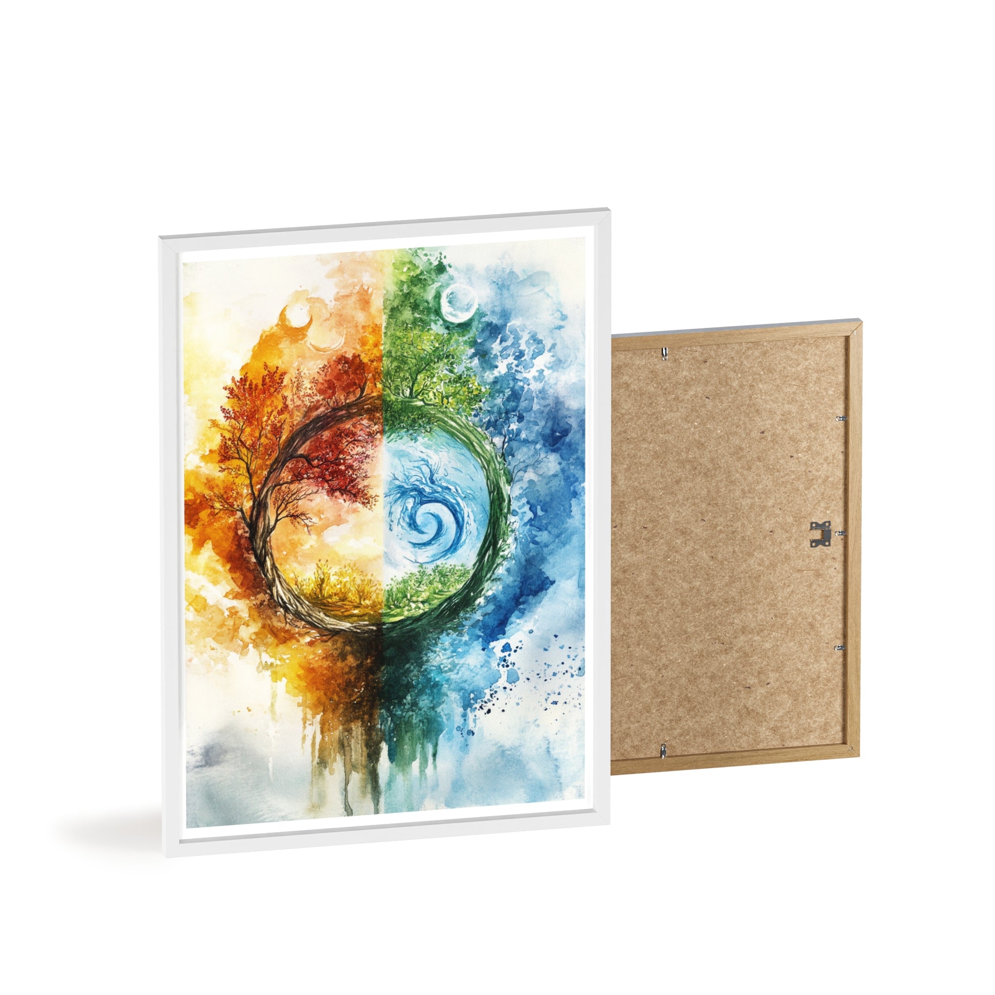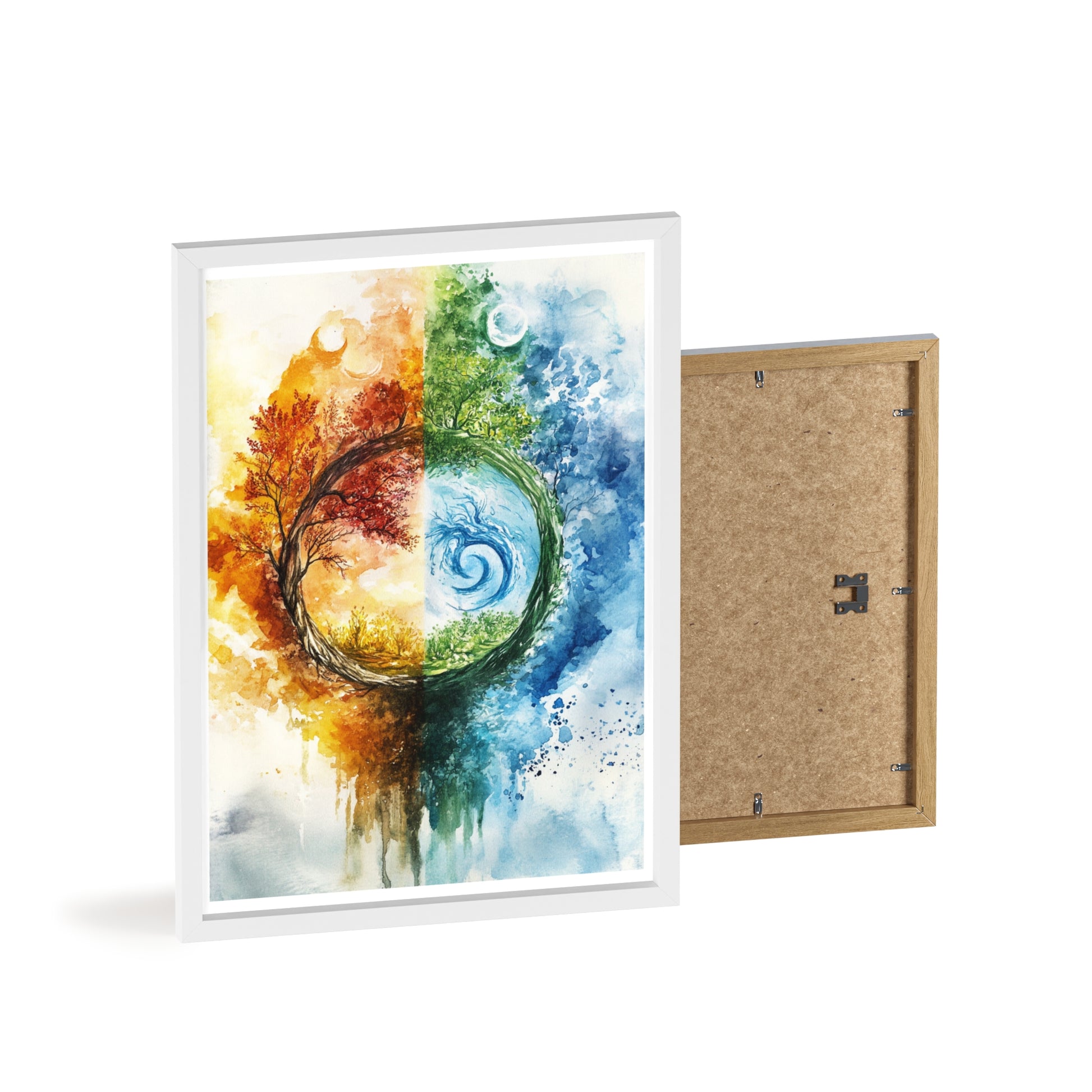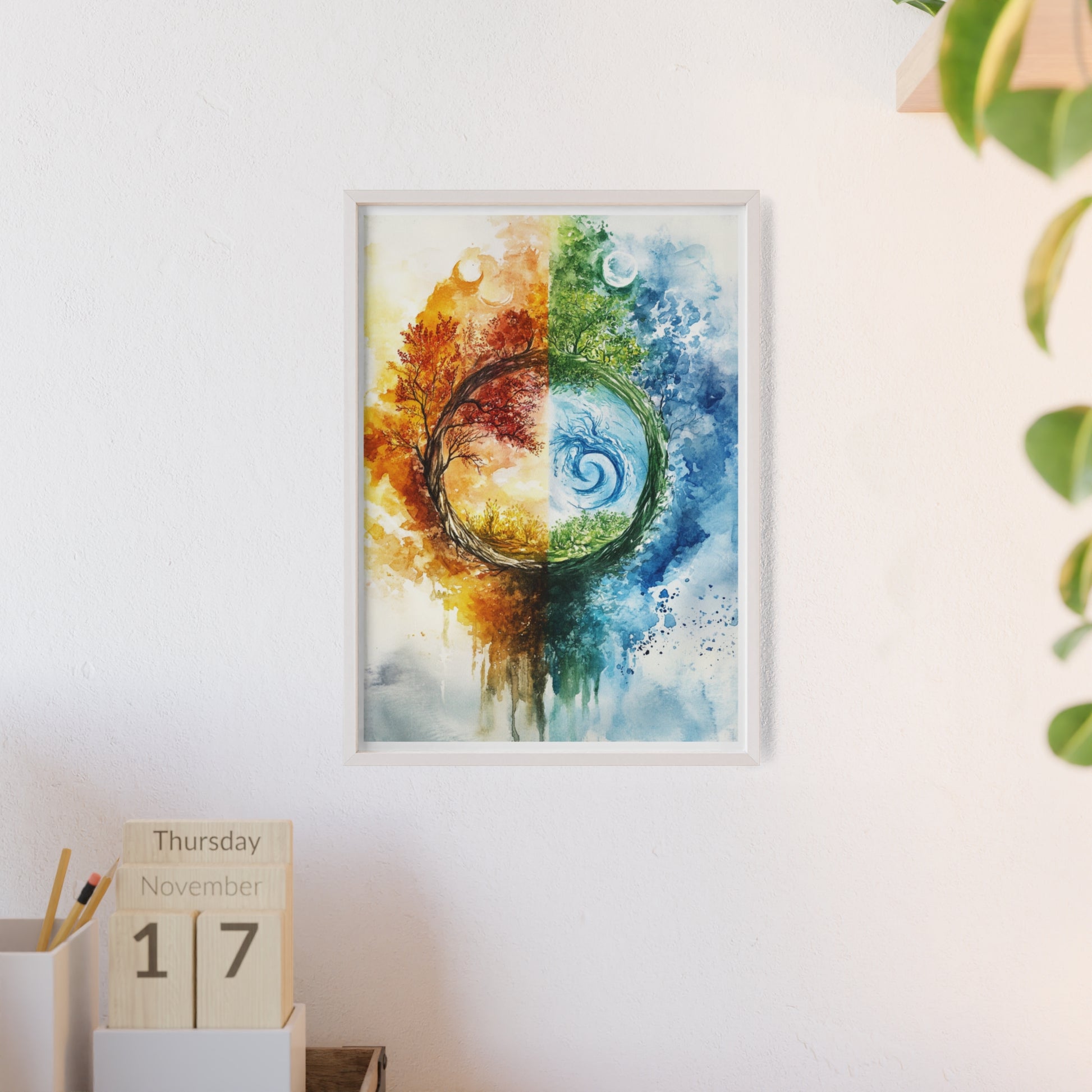 „Die Vier Elemente“ steht für das Zusammenspiel aller Lebenskräfte – Feuer für Energie, Wasser für Emotion, Erde für Stabilität und Luft für Freiheit. Dieses Poster bringt Balance, Lebendigkeit und natürliche Harmonie in dein Zuhause.