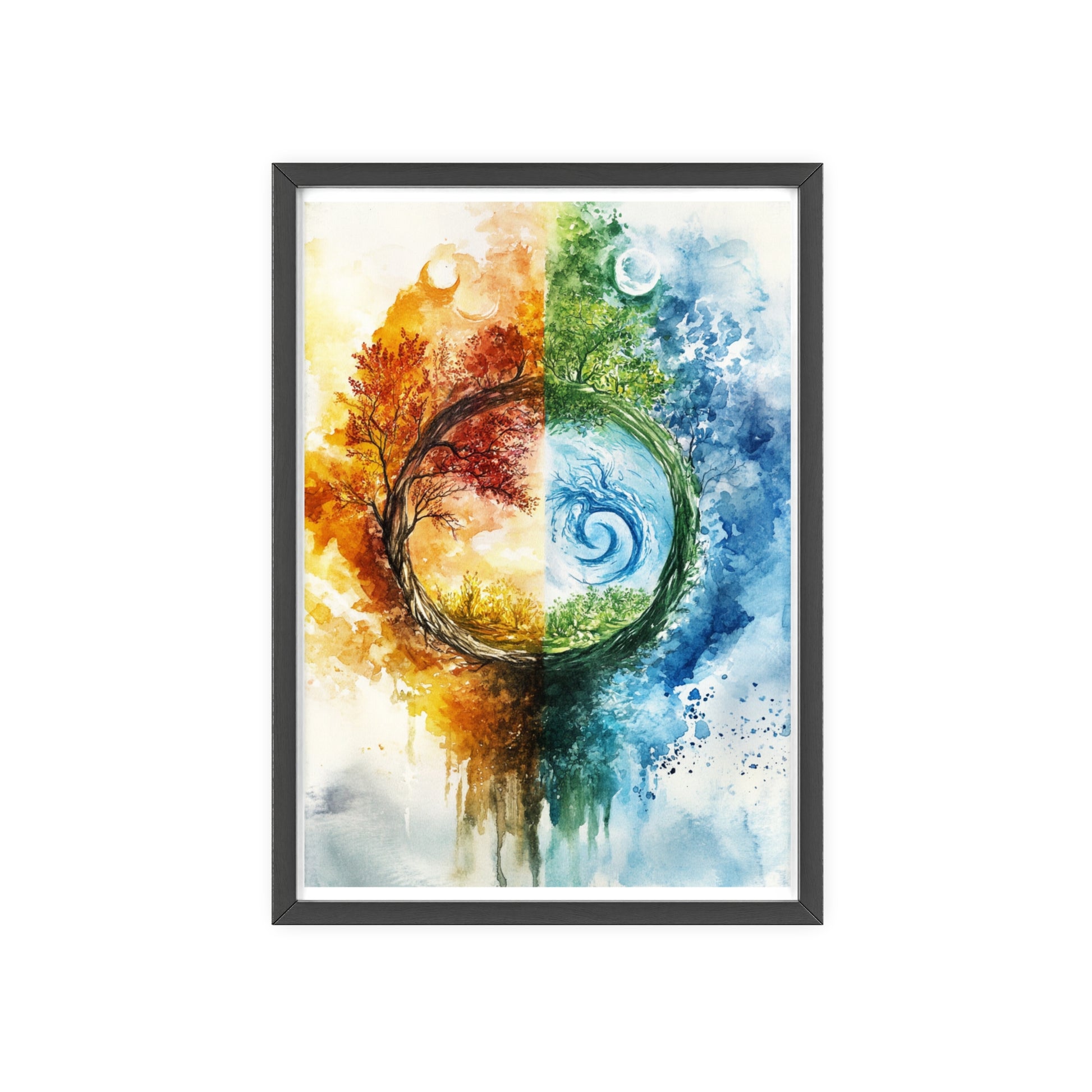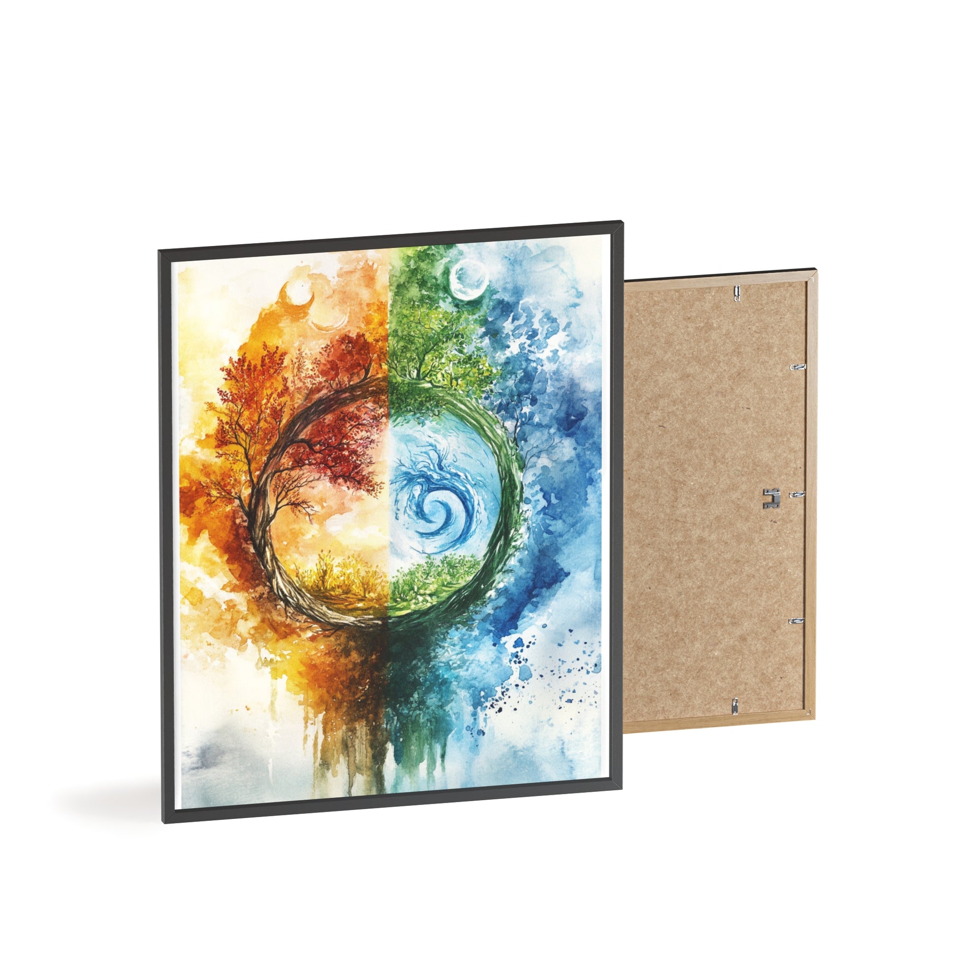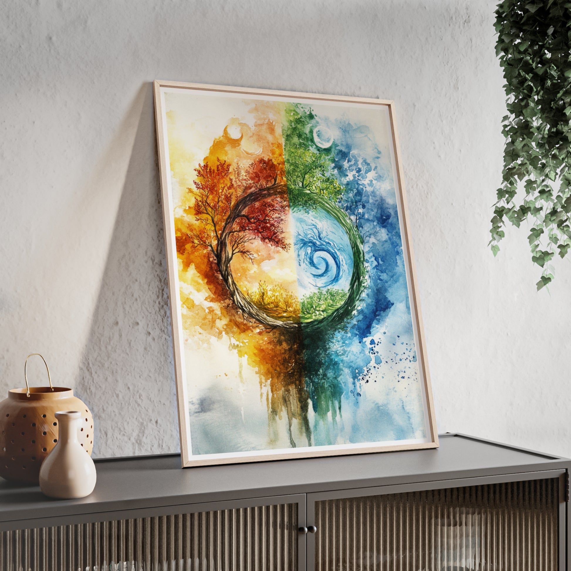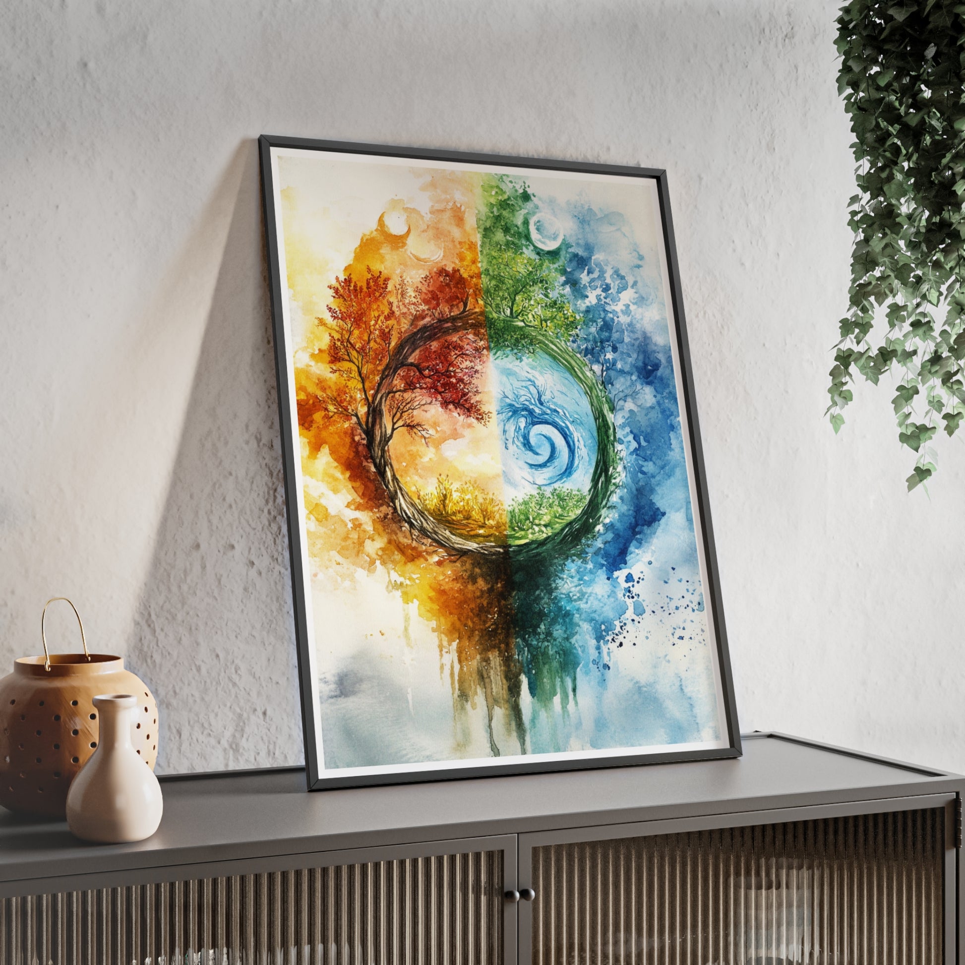 „Die Vier Elemente“ steht für das Zusammenspiel aller Lebenskräfte – Feuer für Energie, Wasser für Emotion, Erde für Stabilität und Luft für Freiheit. Dieses Poster bringt Balance, Lebendigkeit und natürliche Harmonie in dein Zuhause.