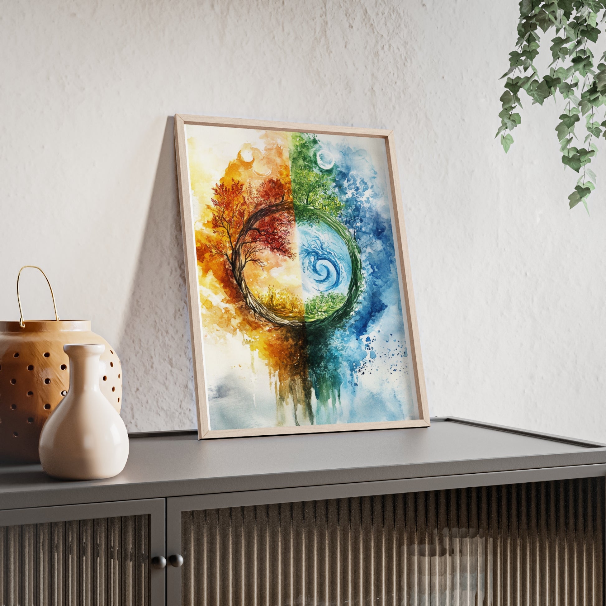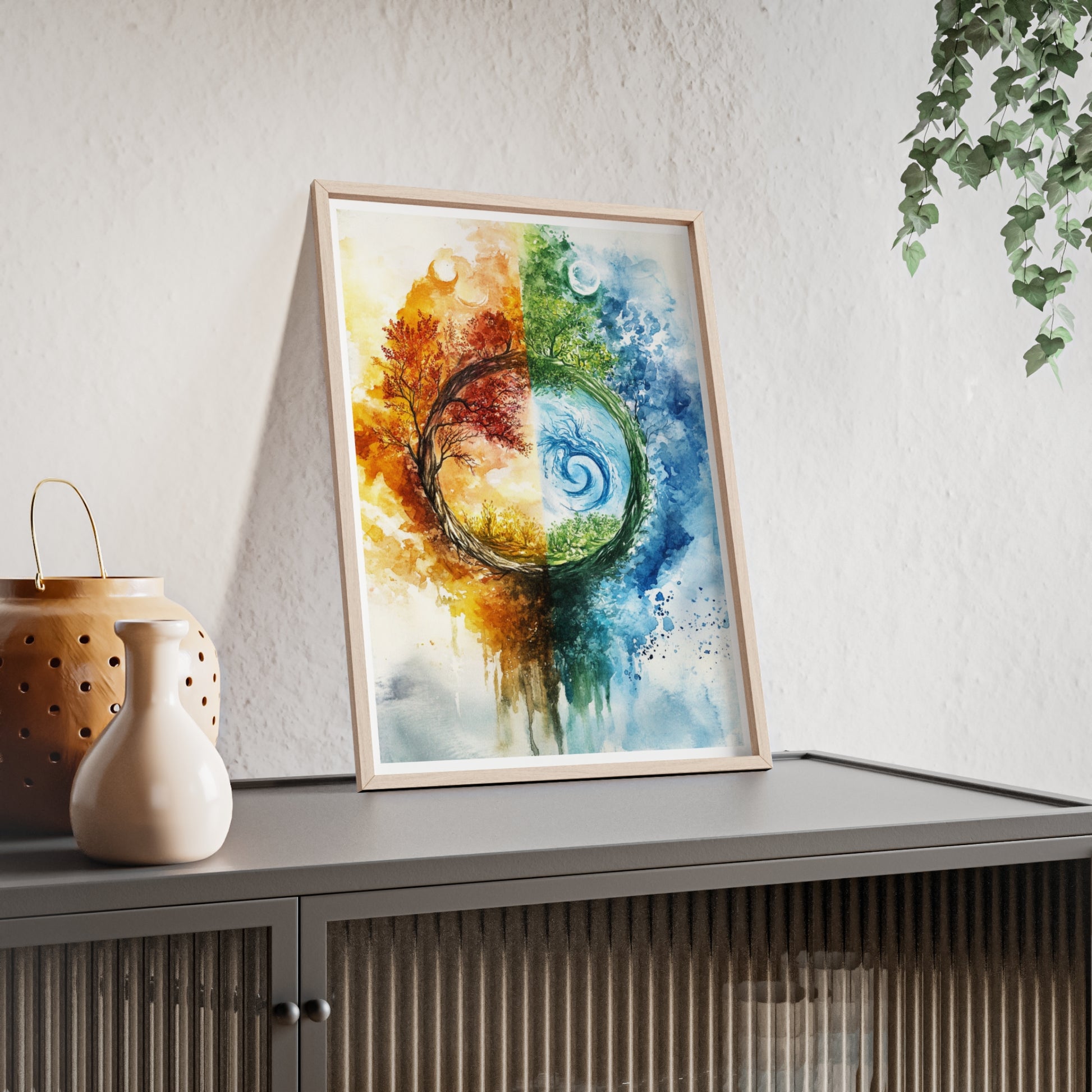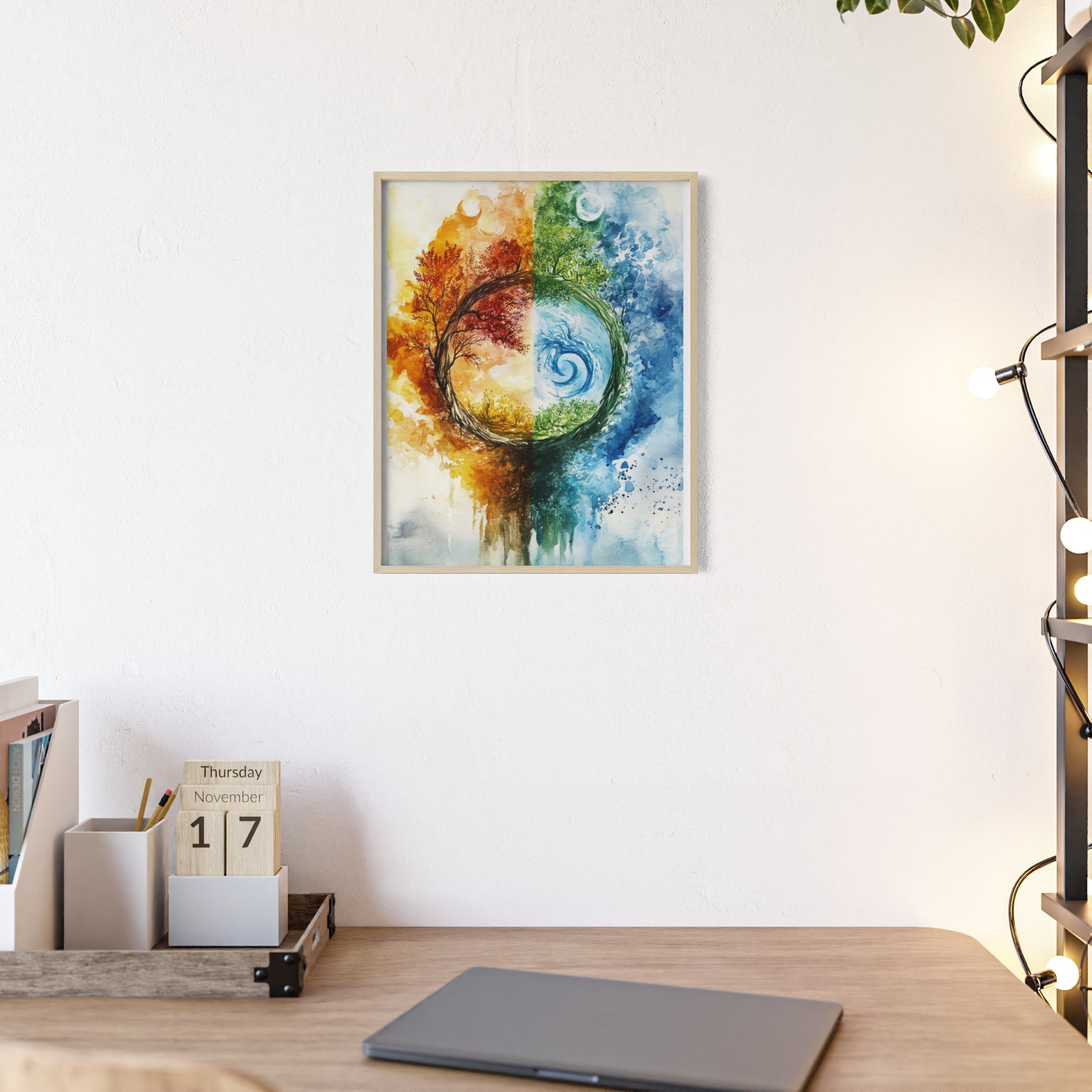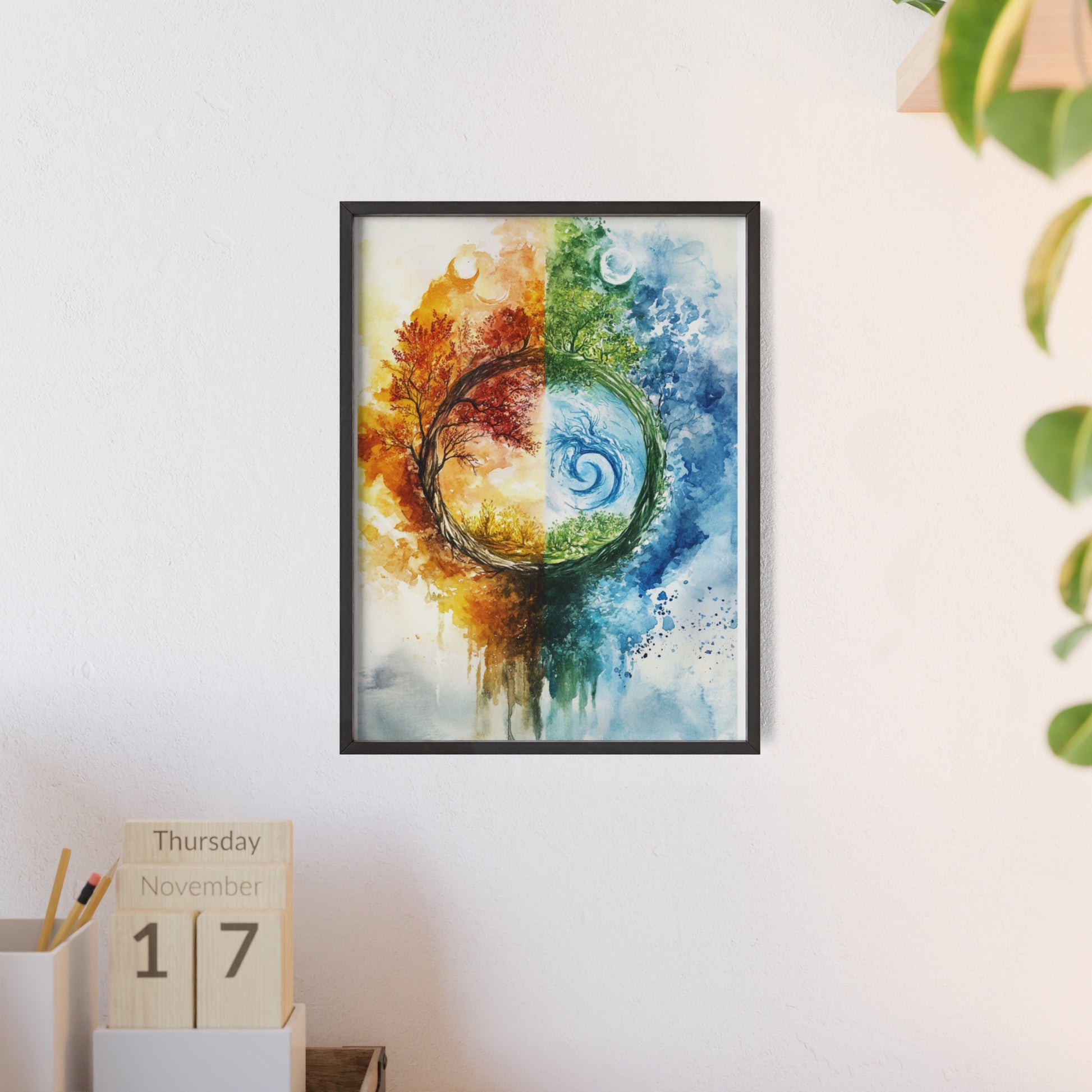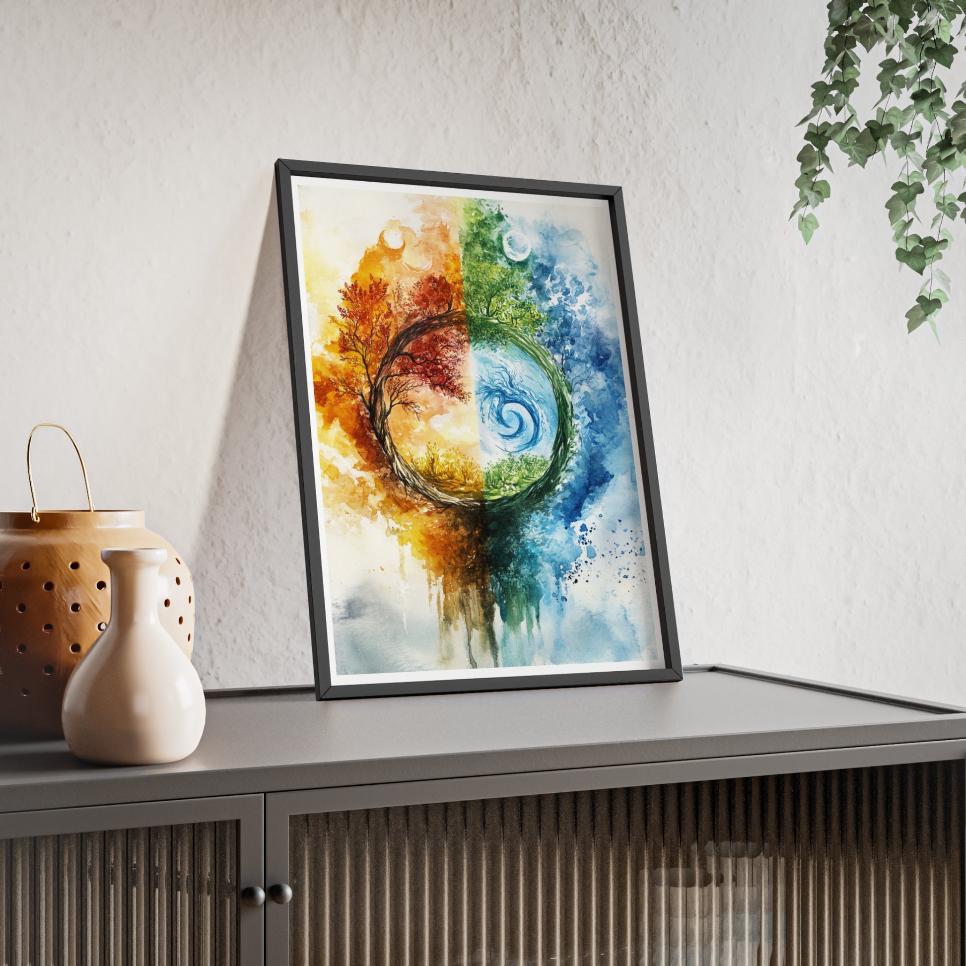 „Die Vier Elemente“ steht für das Zusammenspiel aller Lebenskräfte – Feuer für Energie, Wasser für Emotion, Erde für Stabilität und Luft für Freiheit. Dieses Poster bringt Balance, Lebendigkeit und natürliche Harmonie in dein Zuhause.