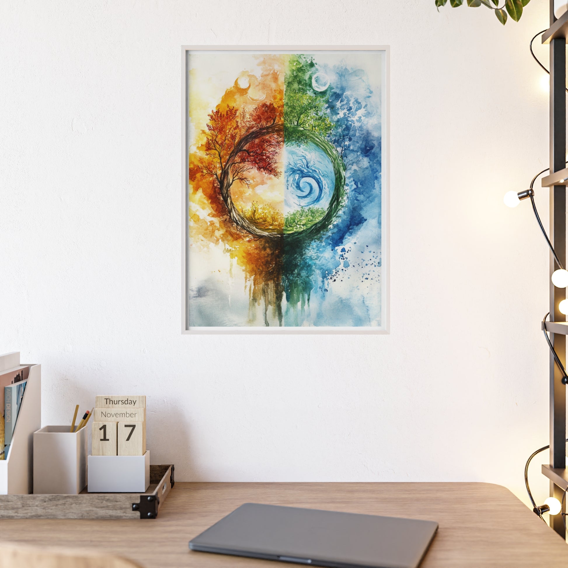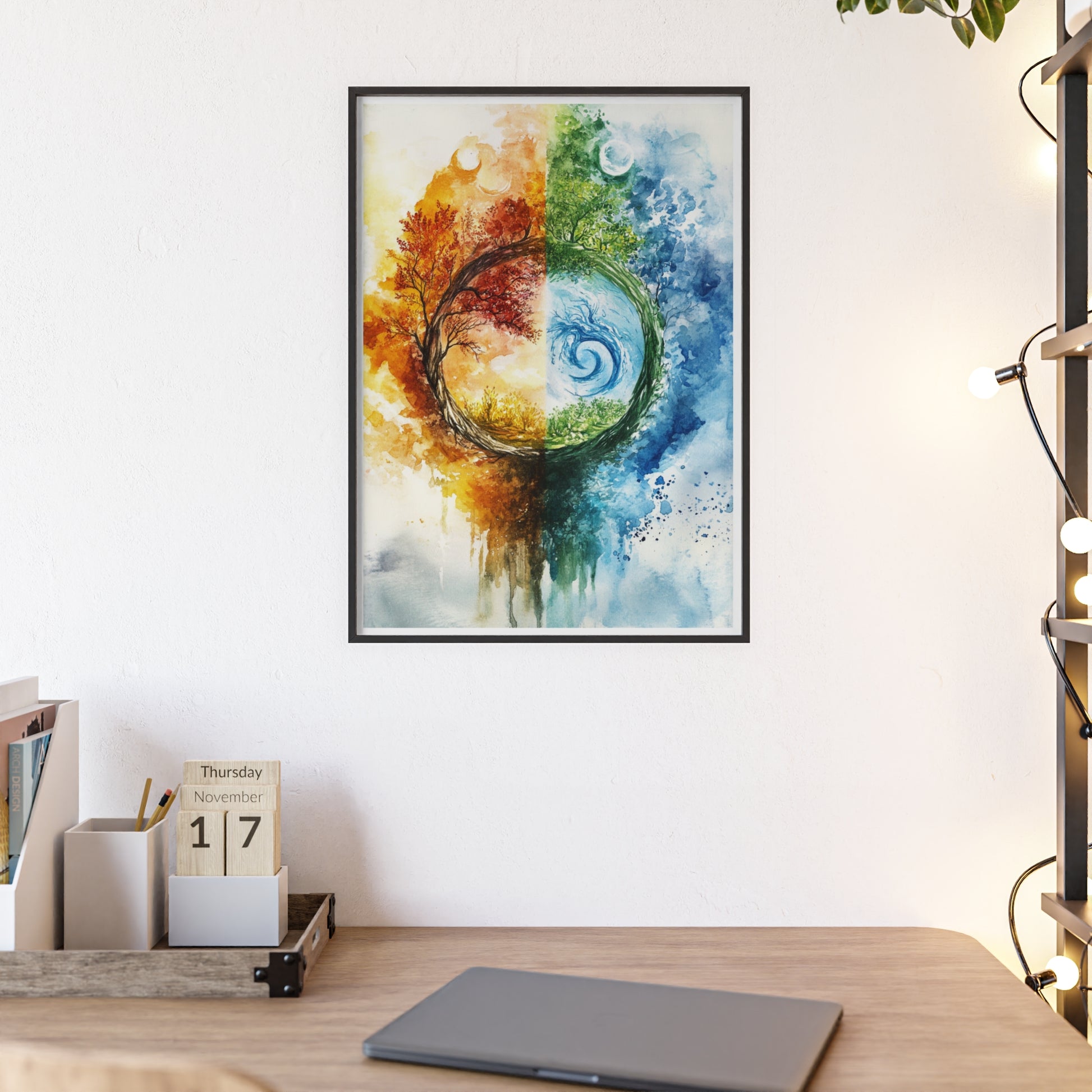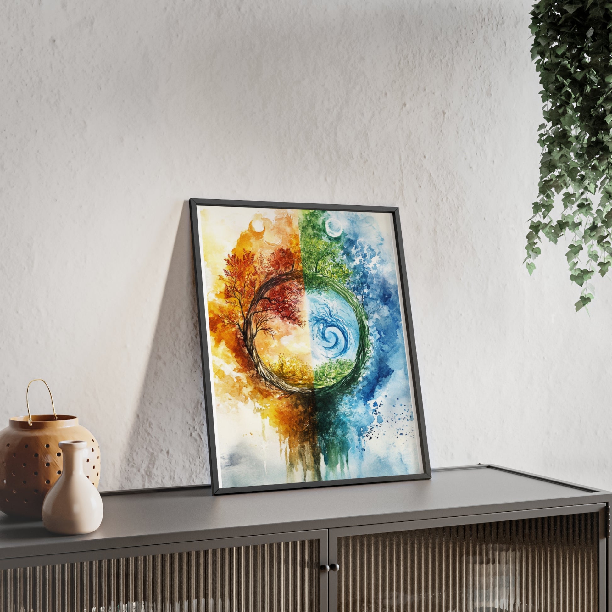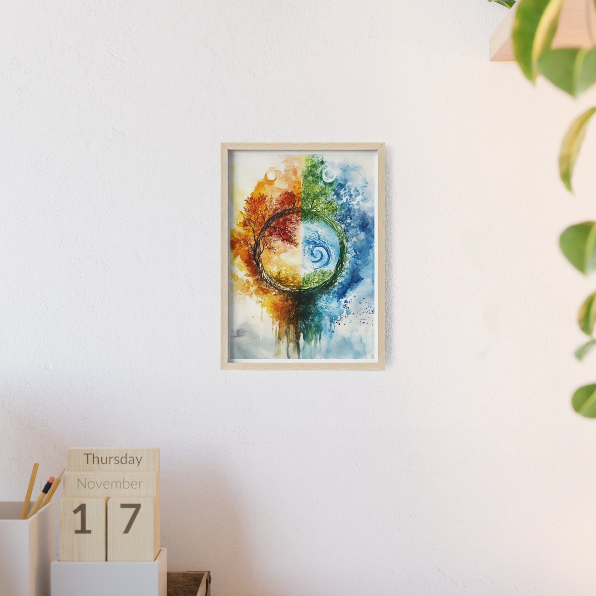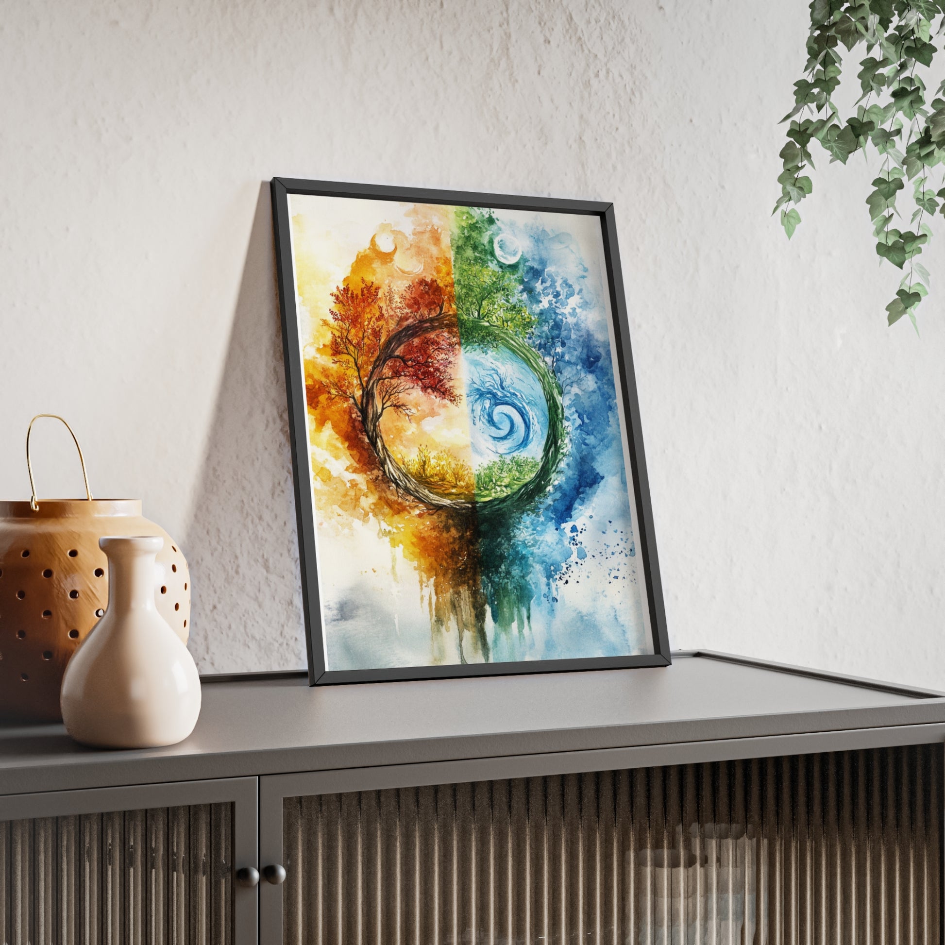 „Die Vier Elemente“ steht für das Zusammenspiel aller Lebenskräfte – Feuer für Energie, Wasser für Emotion, Erde für Stabilität und Luft für Freiheit. Dieses Poster bringt Balance, Lebendigkeit und natürliche Harmonie in dein Zuhause.