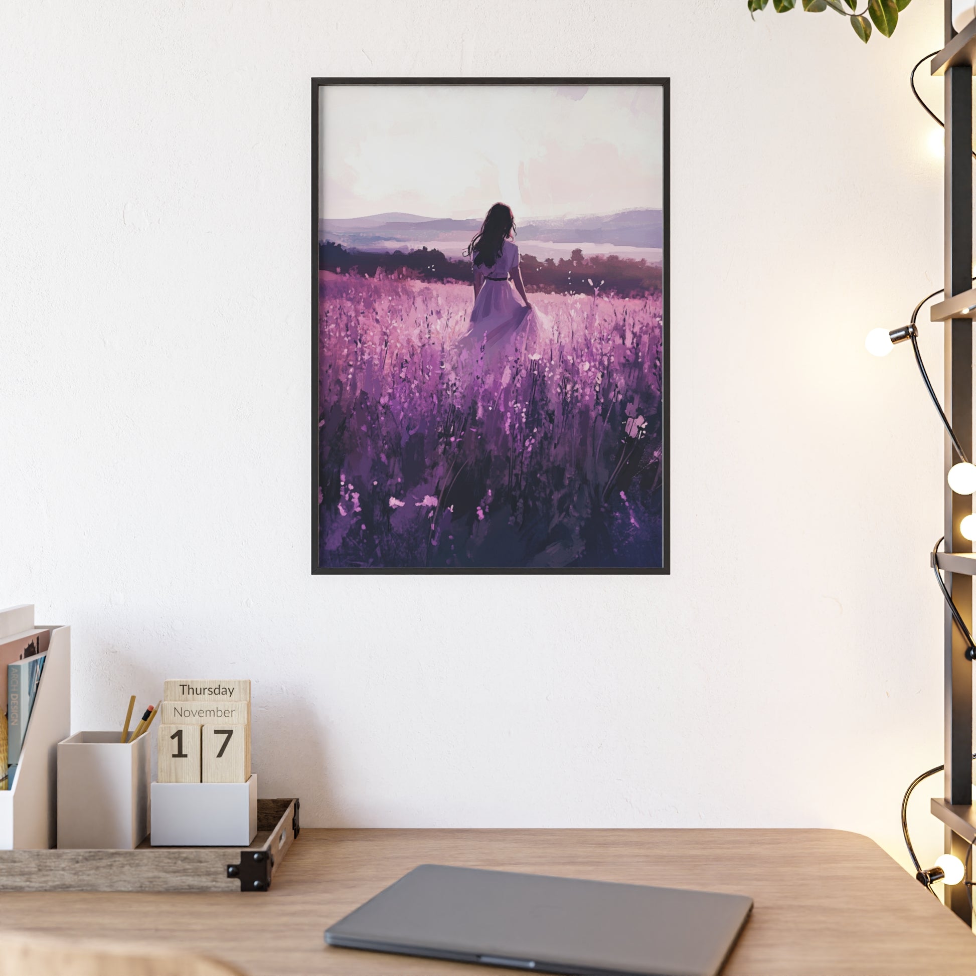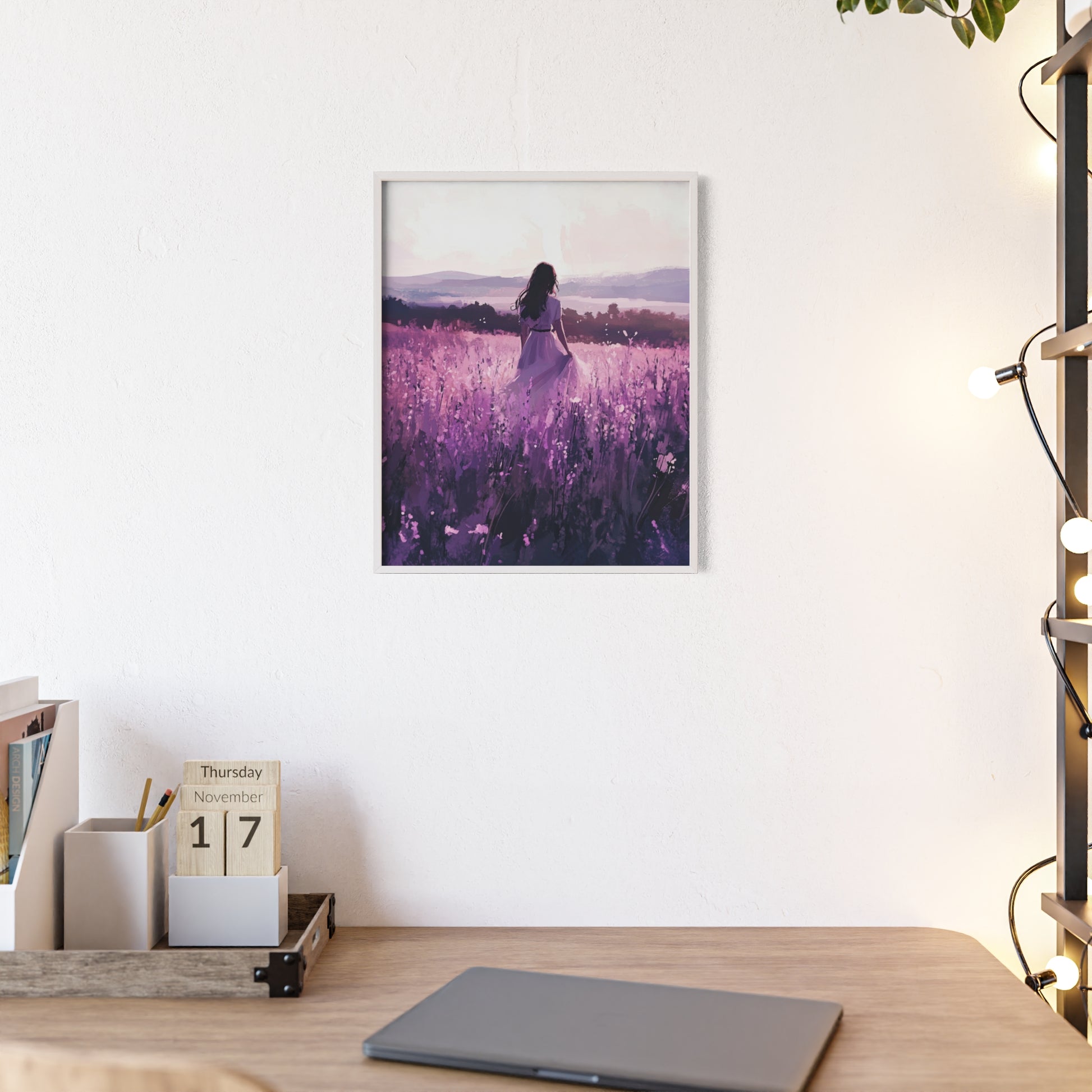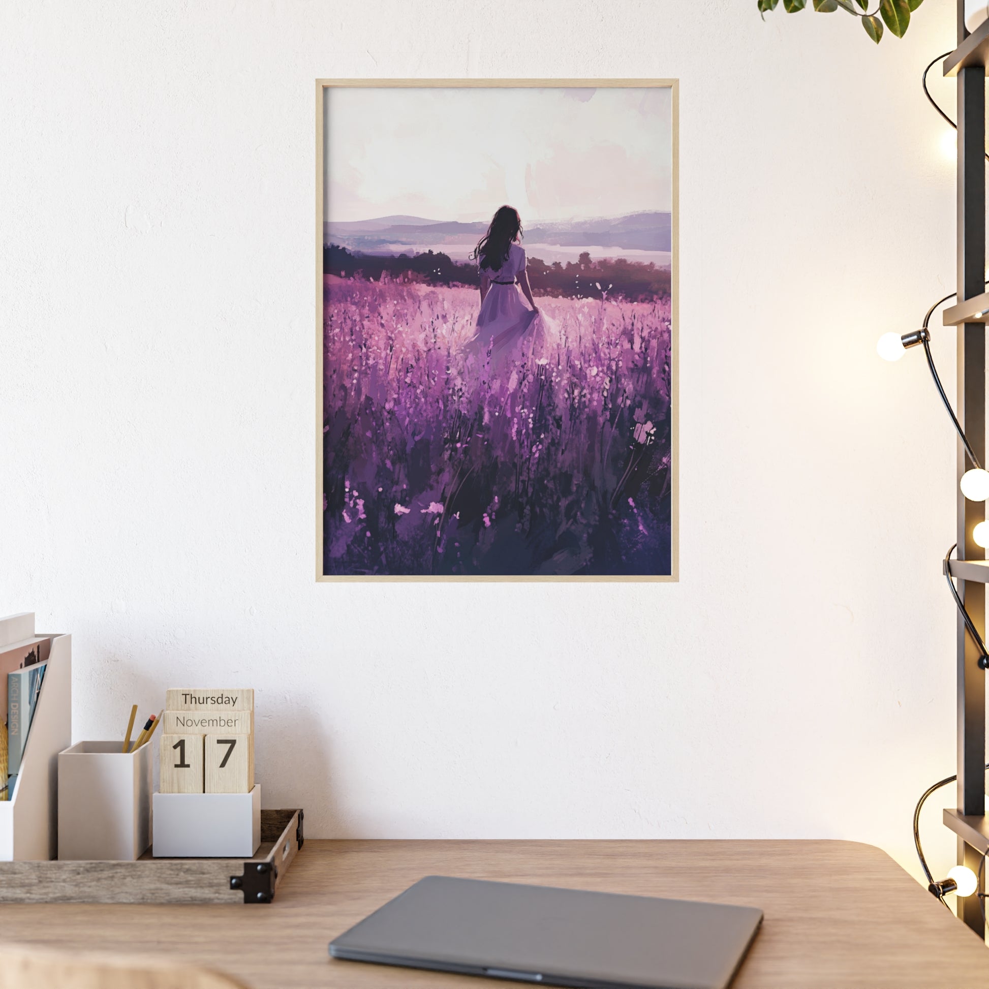 „Im Lavendelfeld“ steht für Frieden, Selbstfindung und den Zauber der Stille. Dieses Poster erinnert daran, sich Zeit für sich selbst zu nehmen – und die Schönheit in einfachen Momenten zu finden.