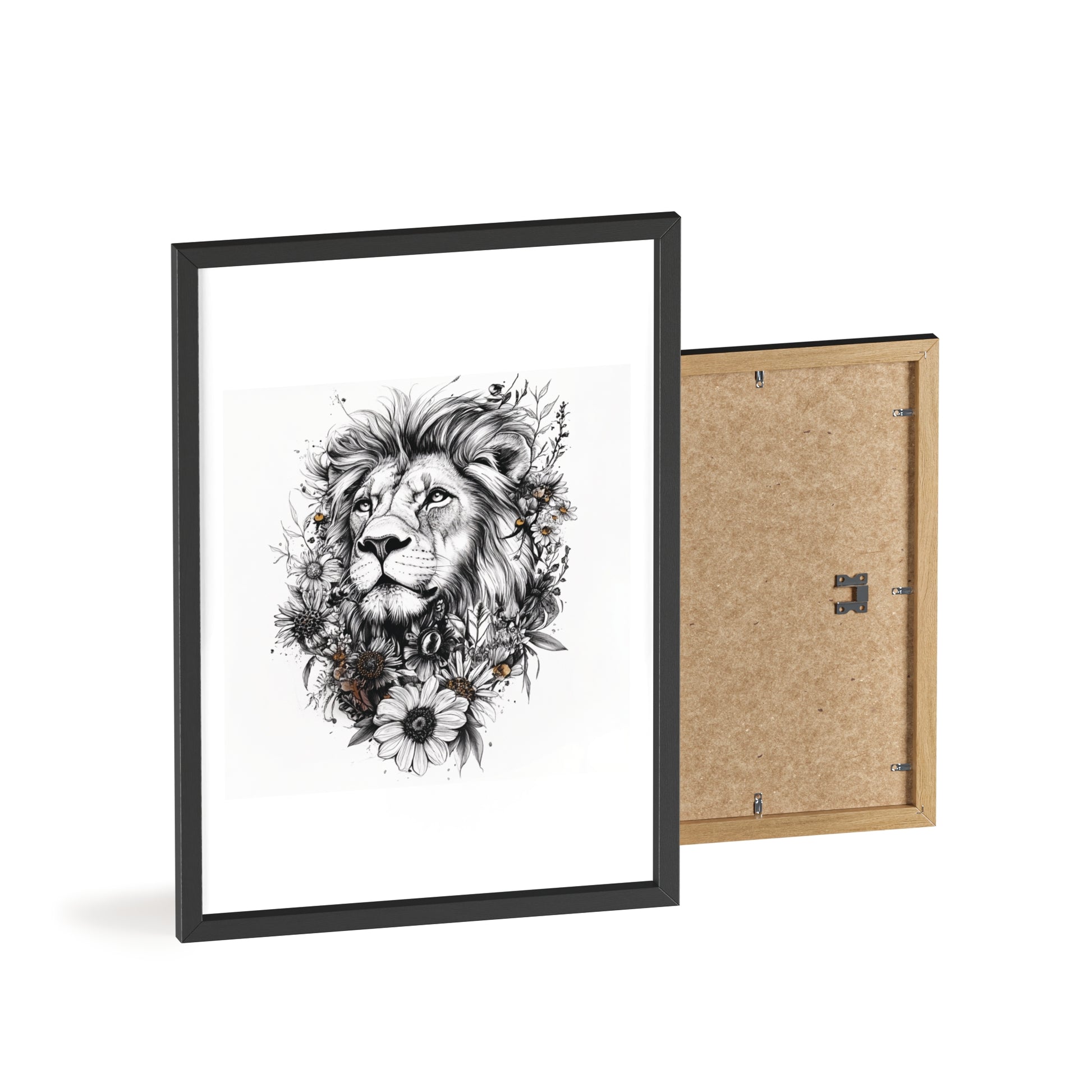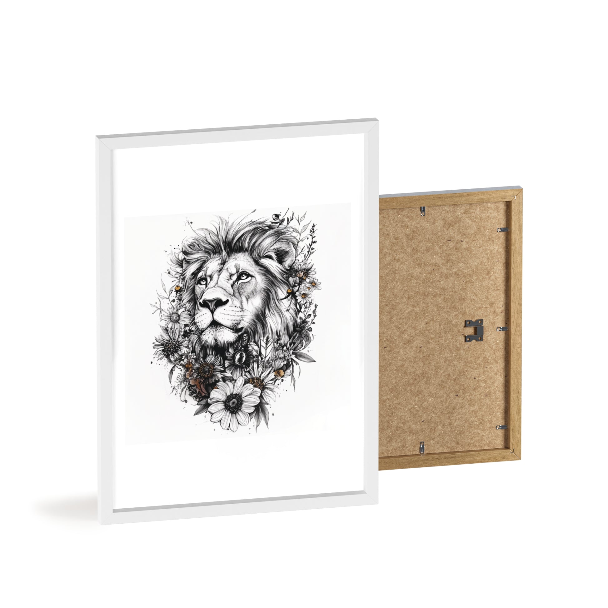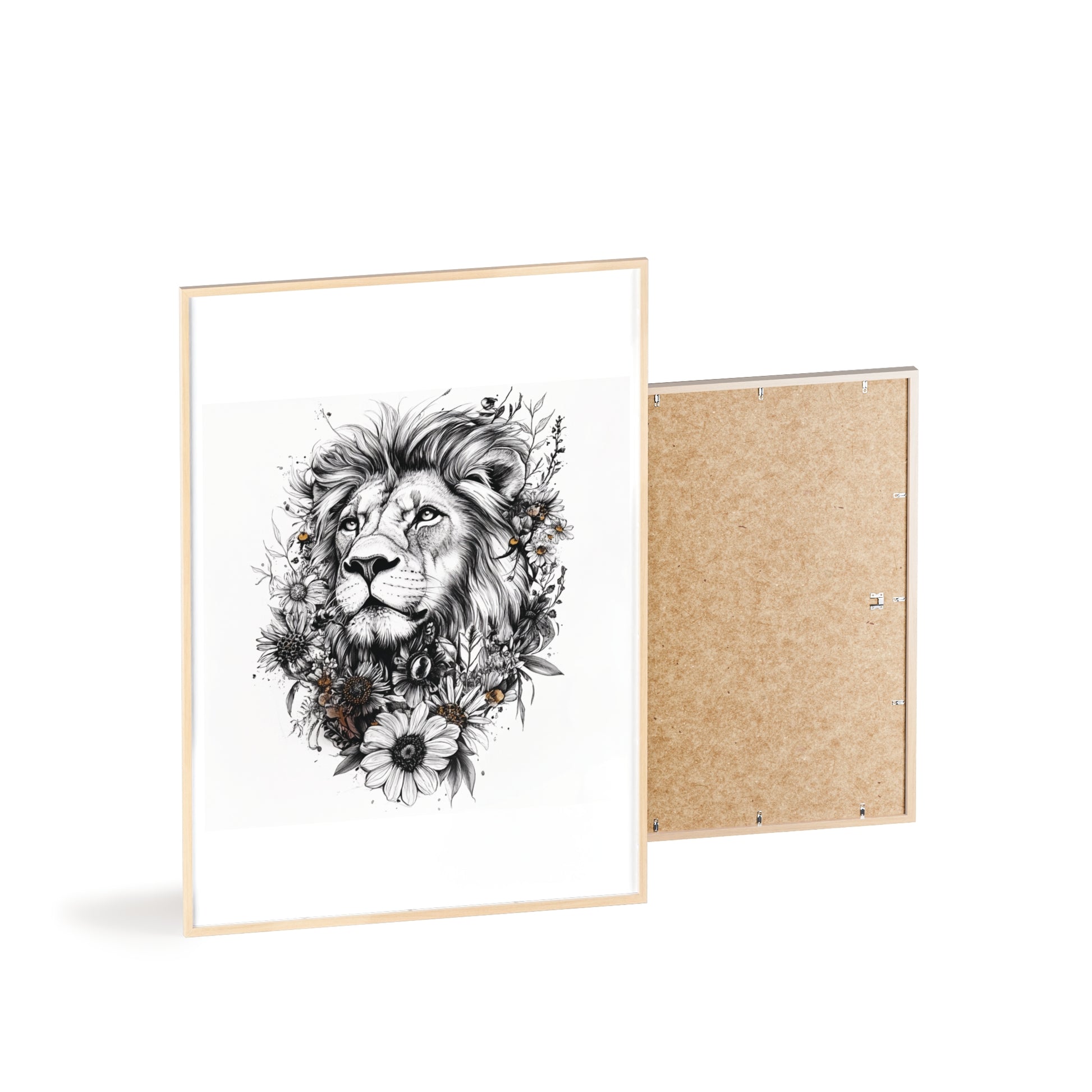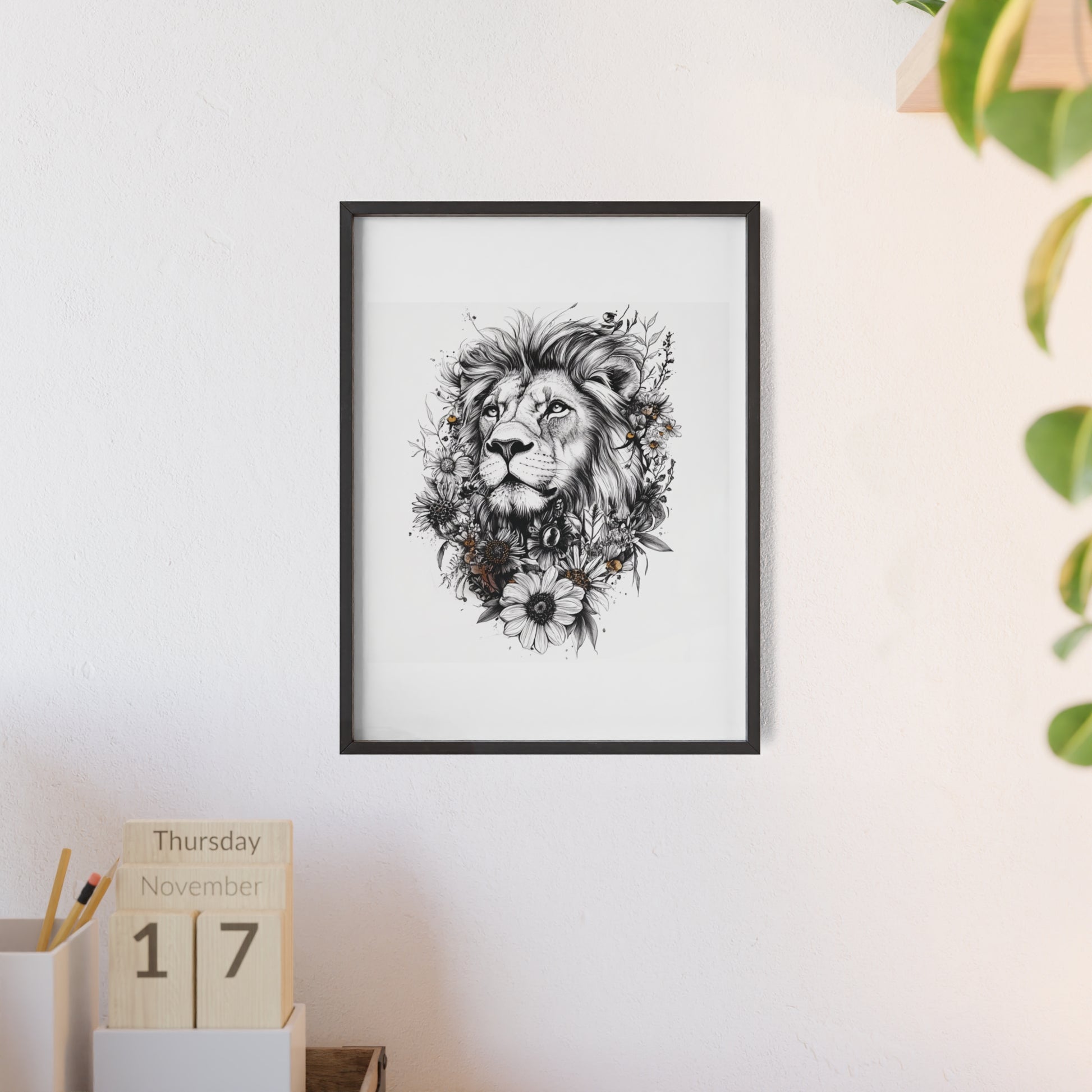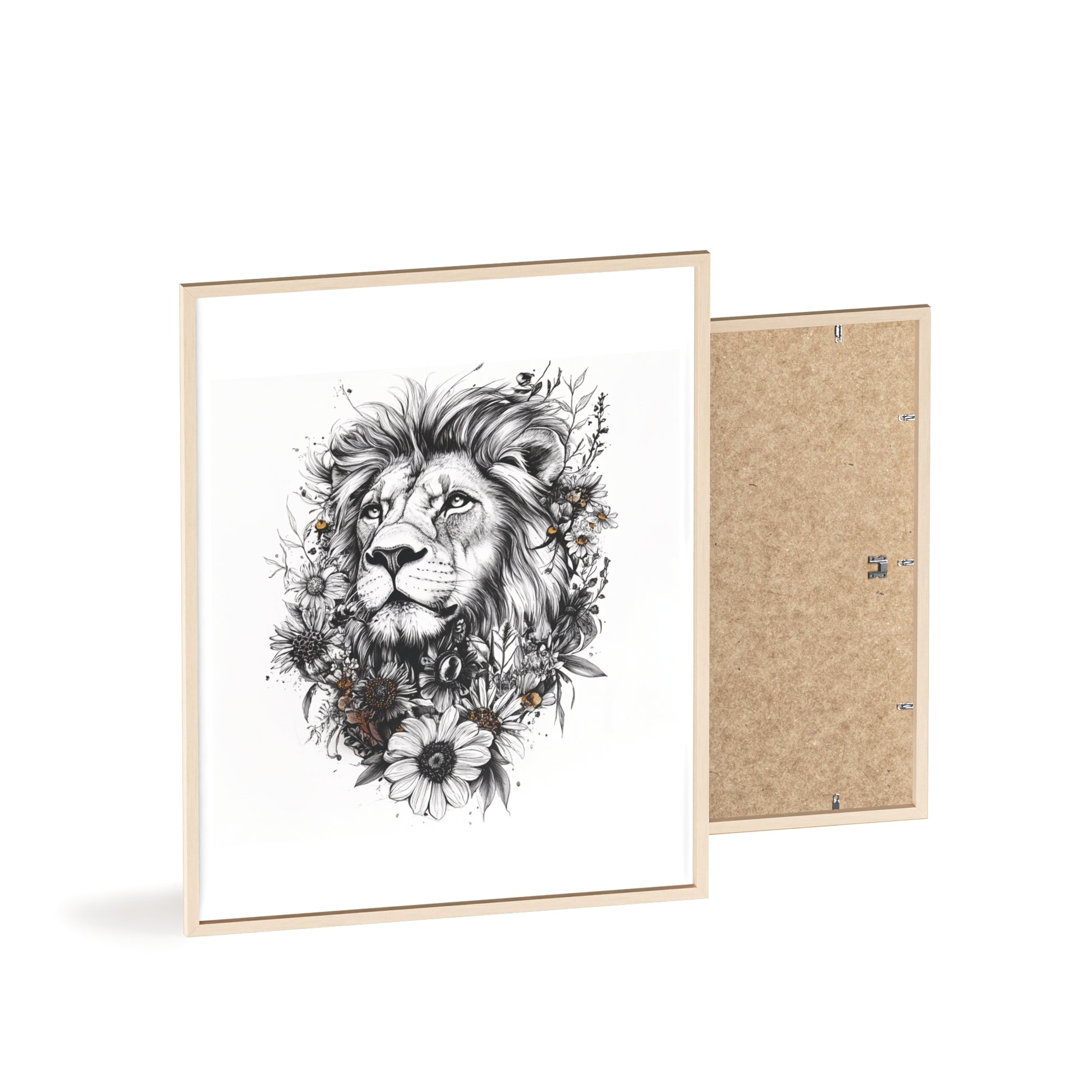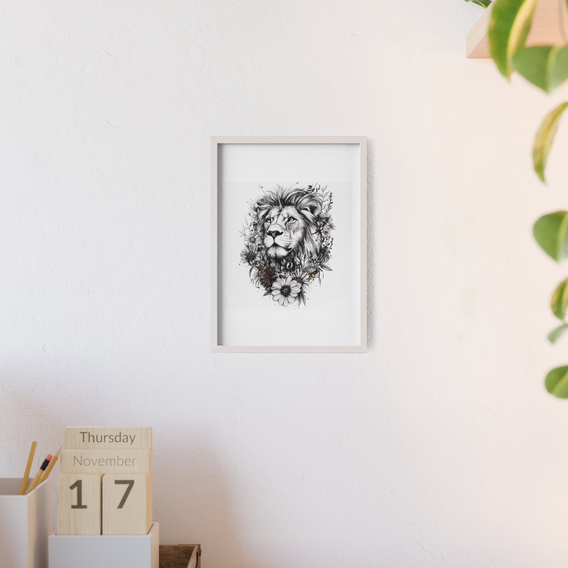 Majestätisch und zugleich zart: Der Löwe wird hier von floralen Akzenten umspielt, was dem Bild Stärke mit poetischer Note verleiht.