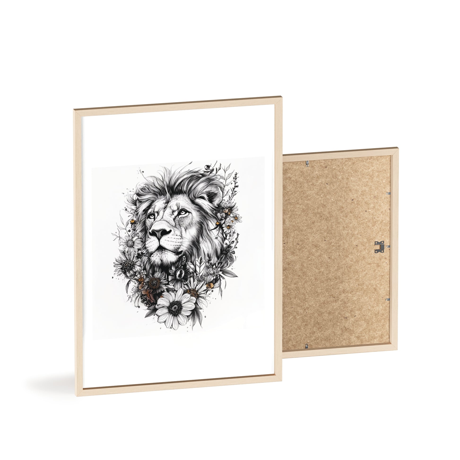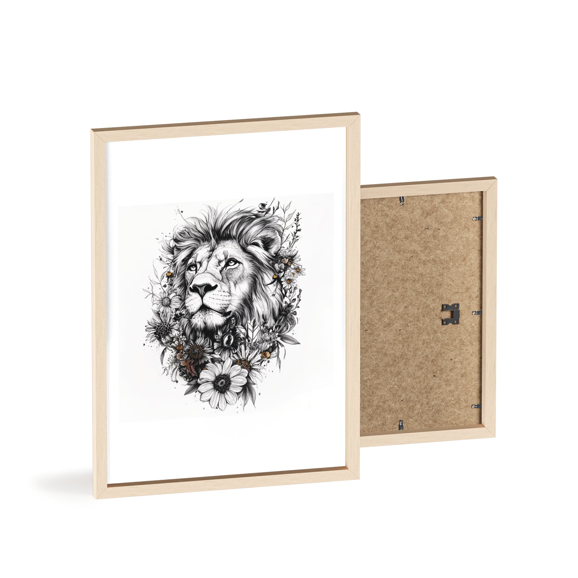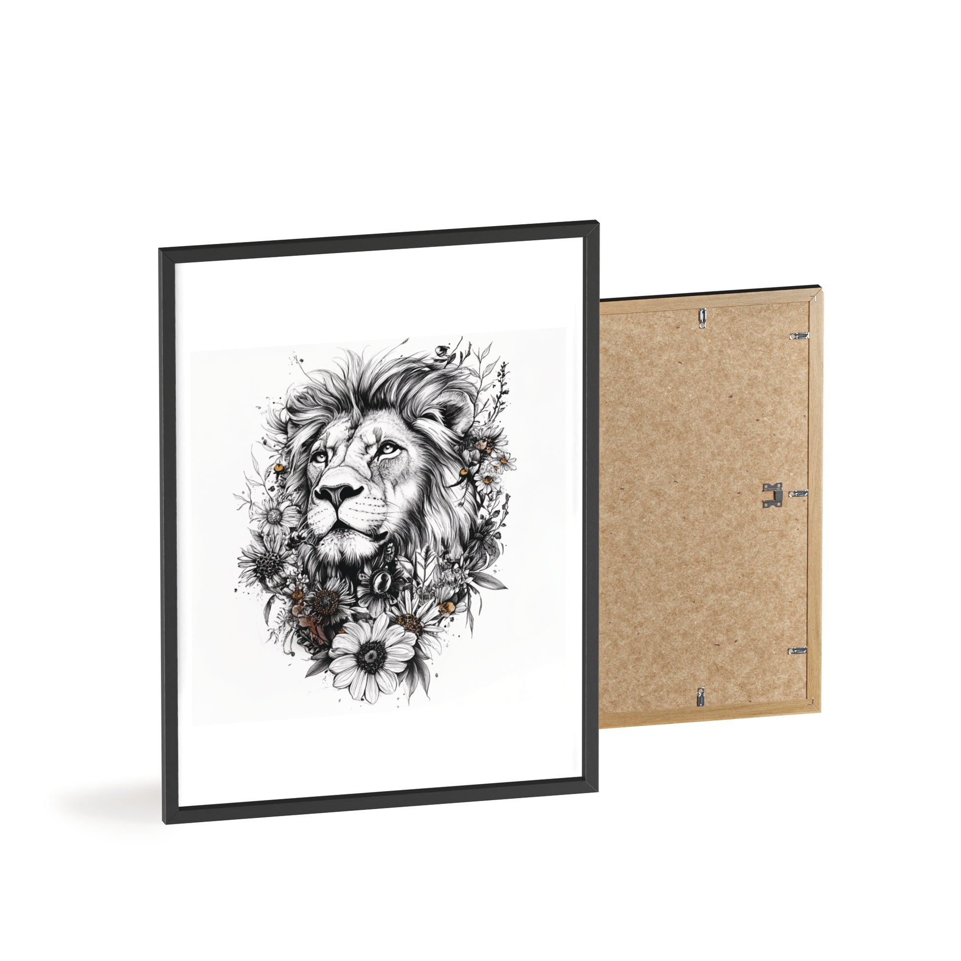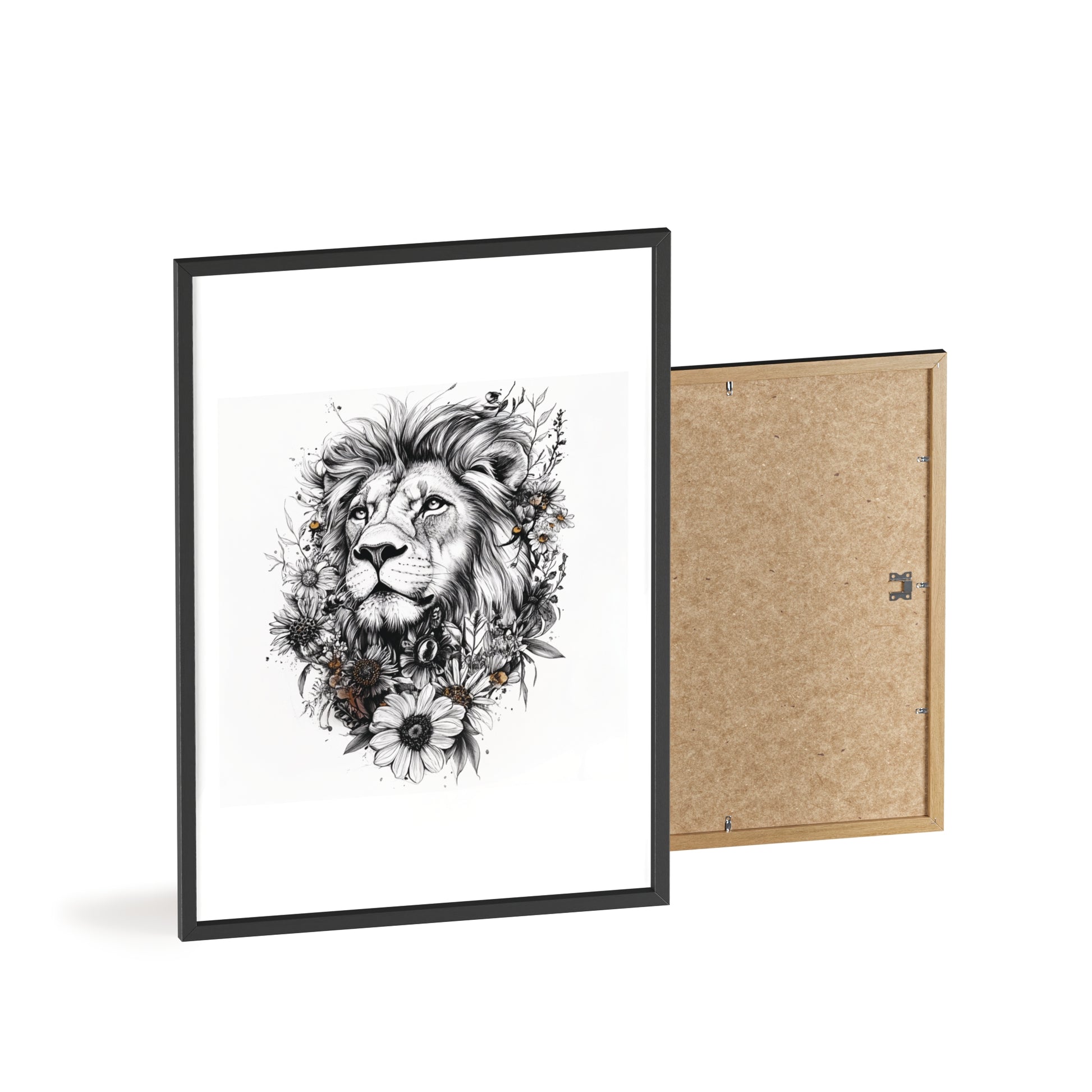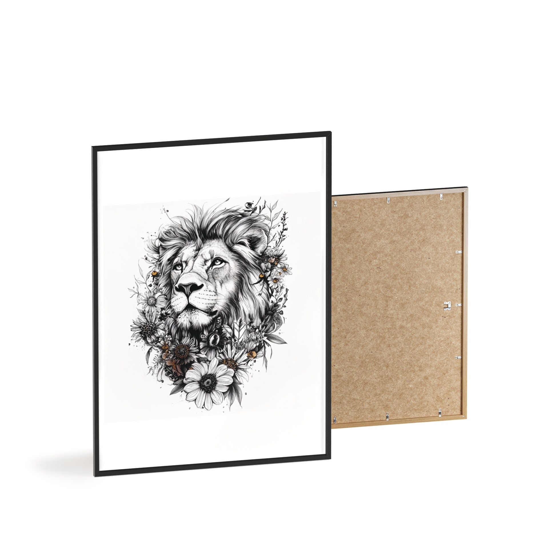 Majestätisch und zugleich zart: Der Löwe wird hier von floralen Akzenten umspielt, was dem Bild Stärke mit poetischer Note verleiht.