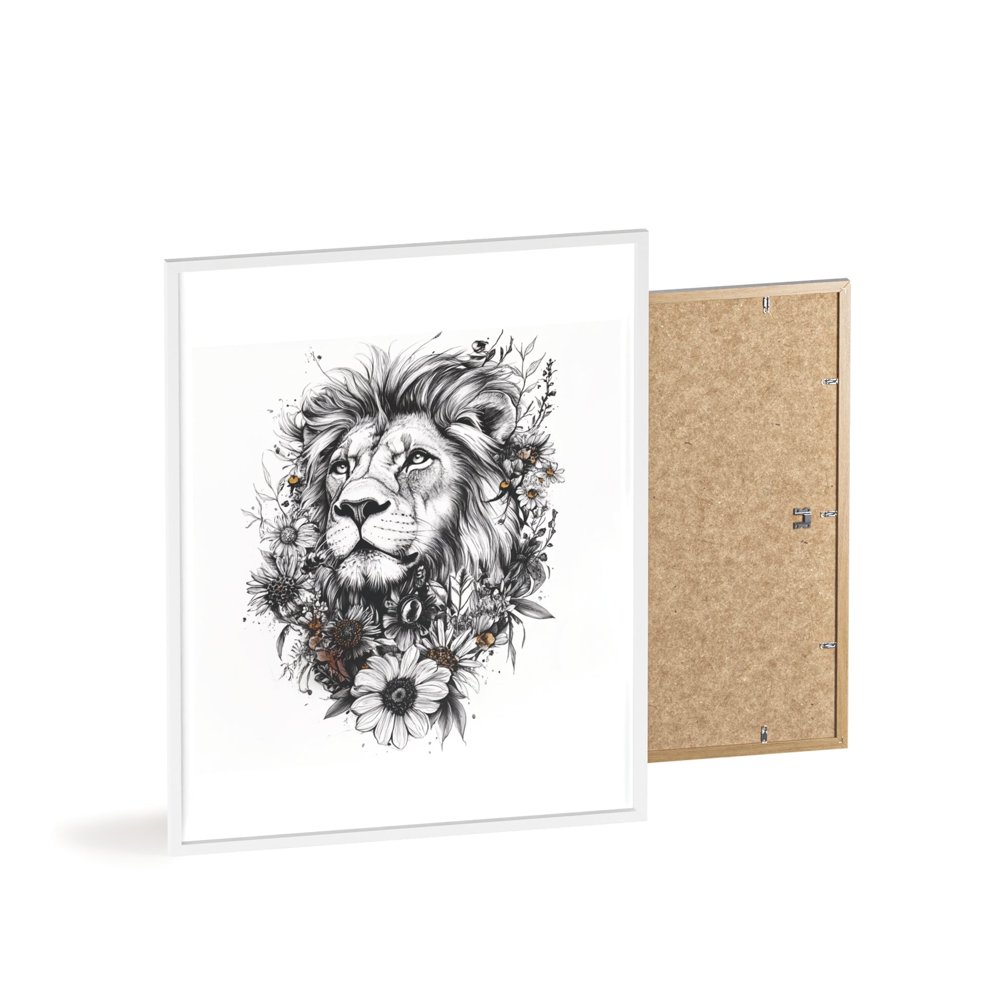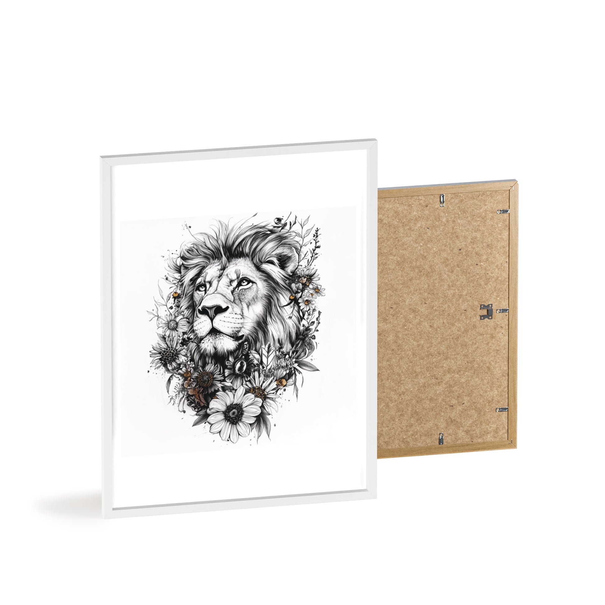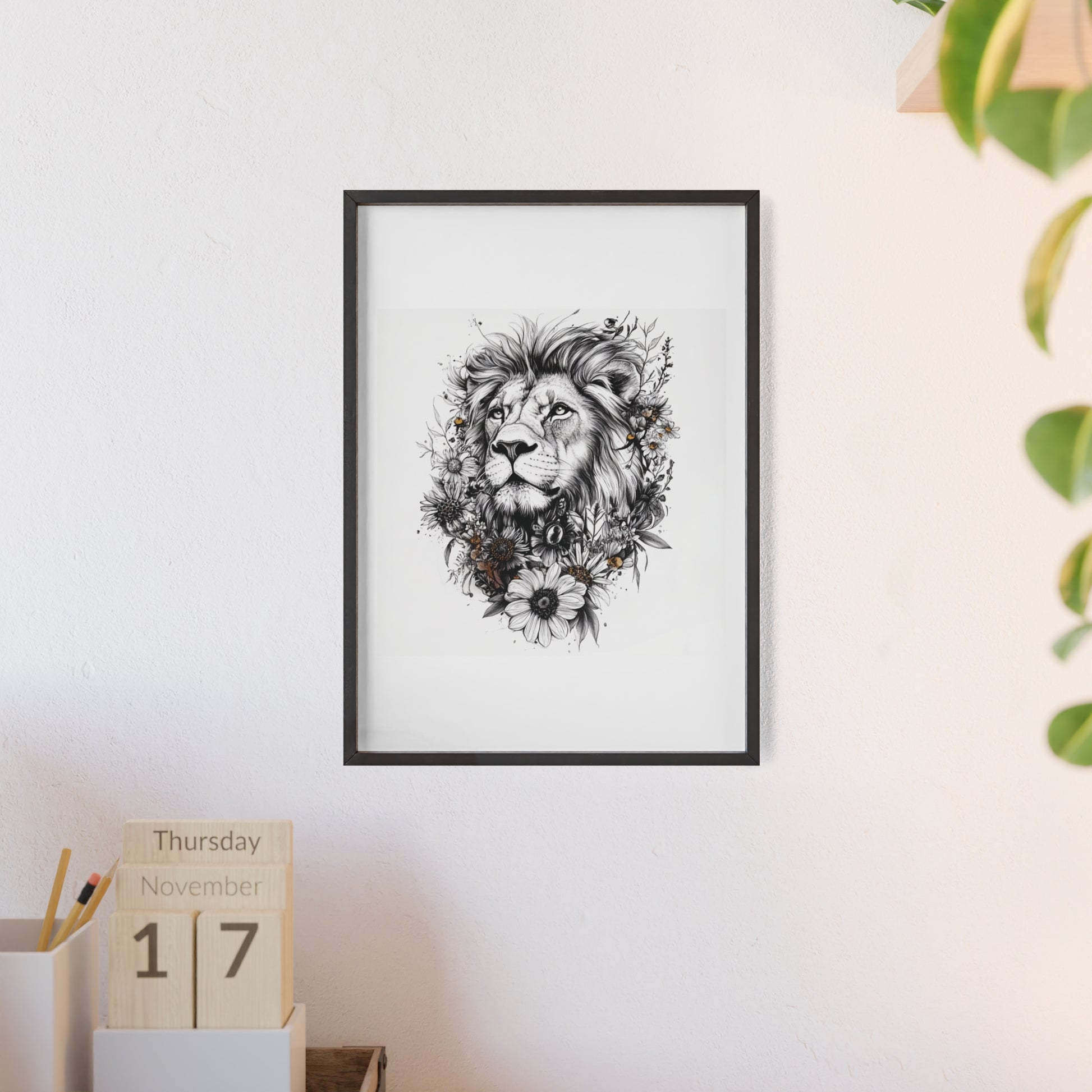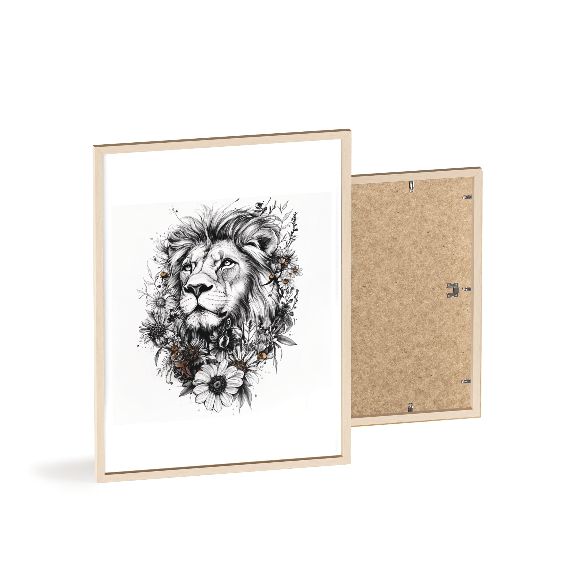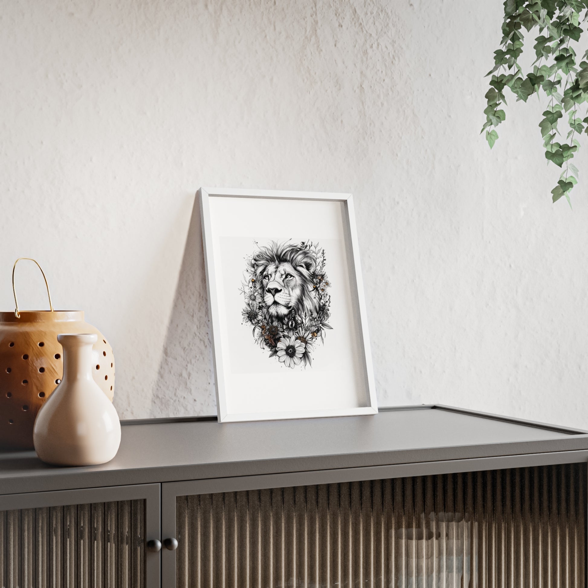 Majestätisch und zugleich zart: Der Löwe wird hier von floralen Akzenten umspielt, was dem Bild Stärke mit poetischer Note verleiht.