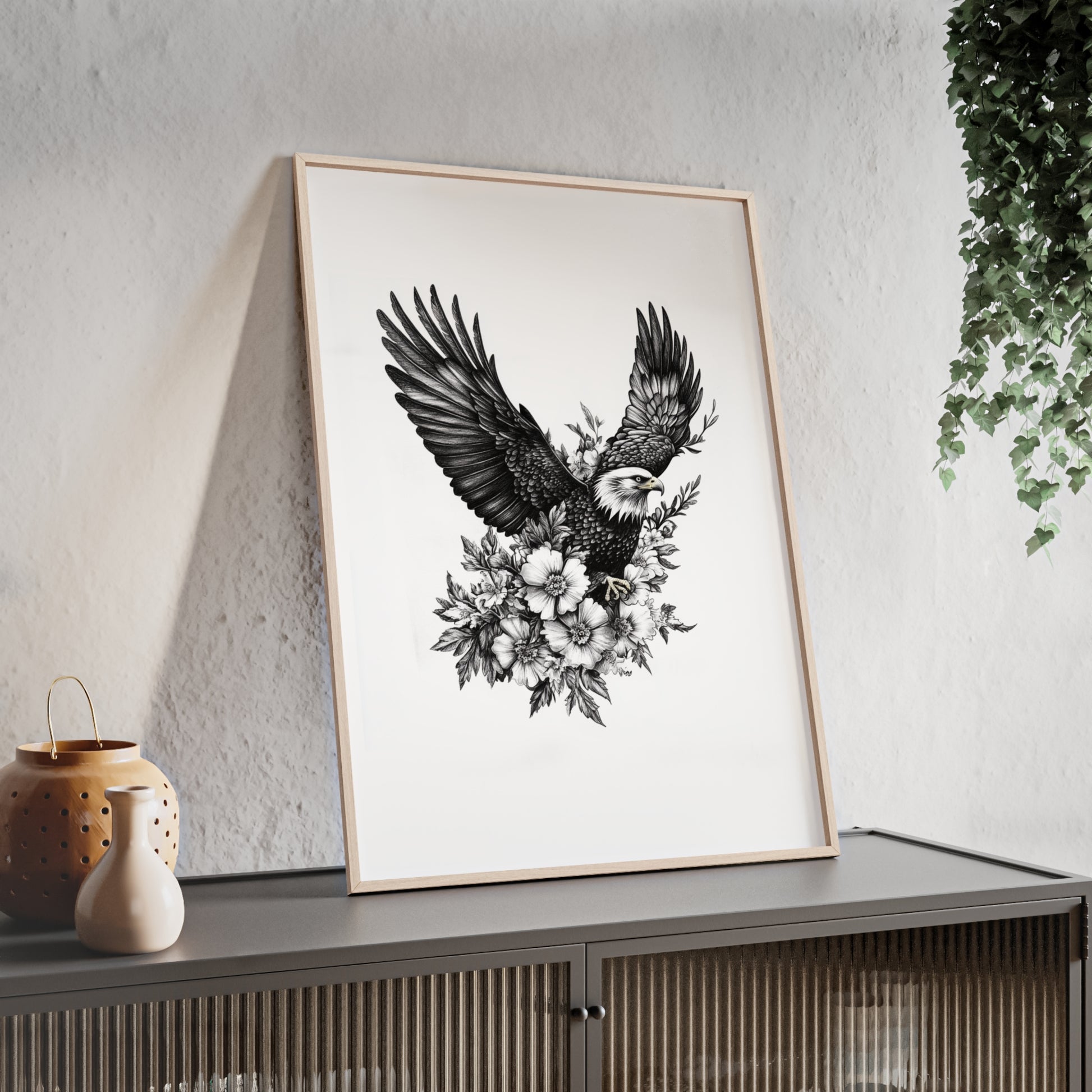 Lass deinen Raum fliegen – mit diesem kraftvollen Poster, das majestätischen Adler mit zarten Wildblumen verbindet. Die harmonische Farbkombination aus kräftigen und sanften Tönen schenkt dir Balance und eine inspirierende Ausstrahlung.