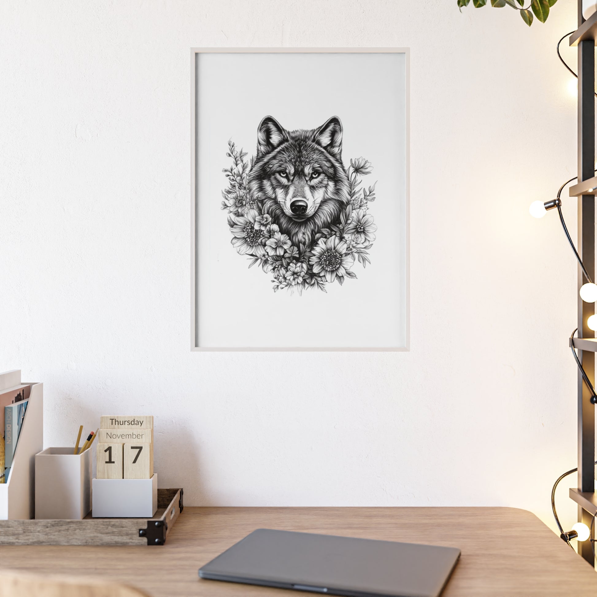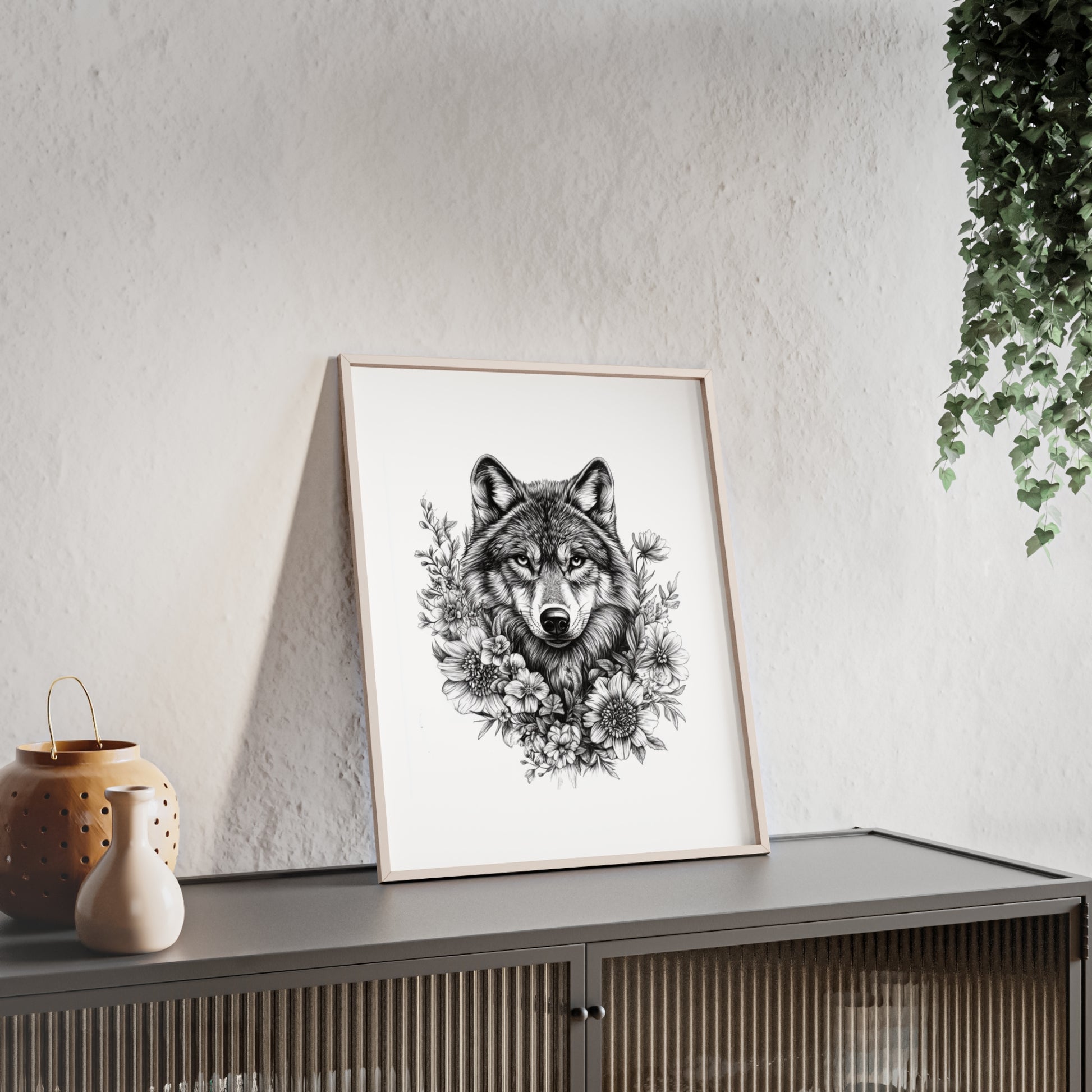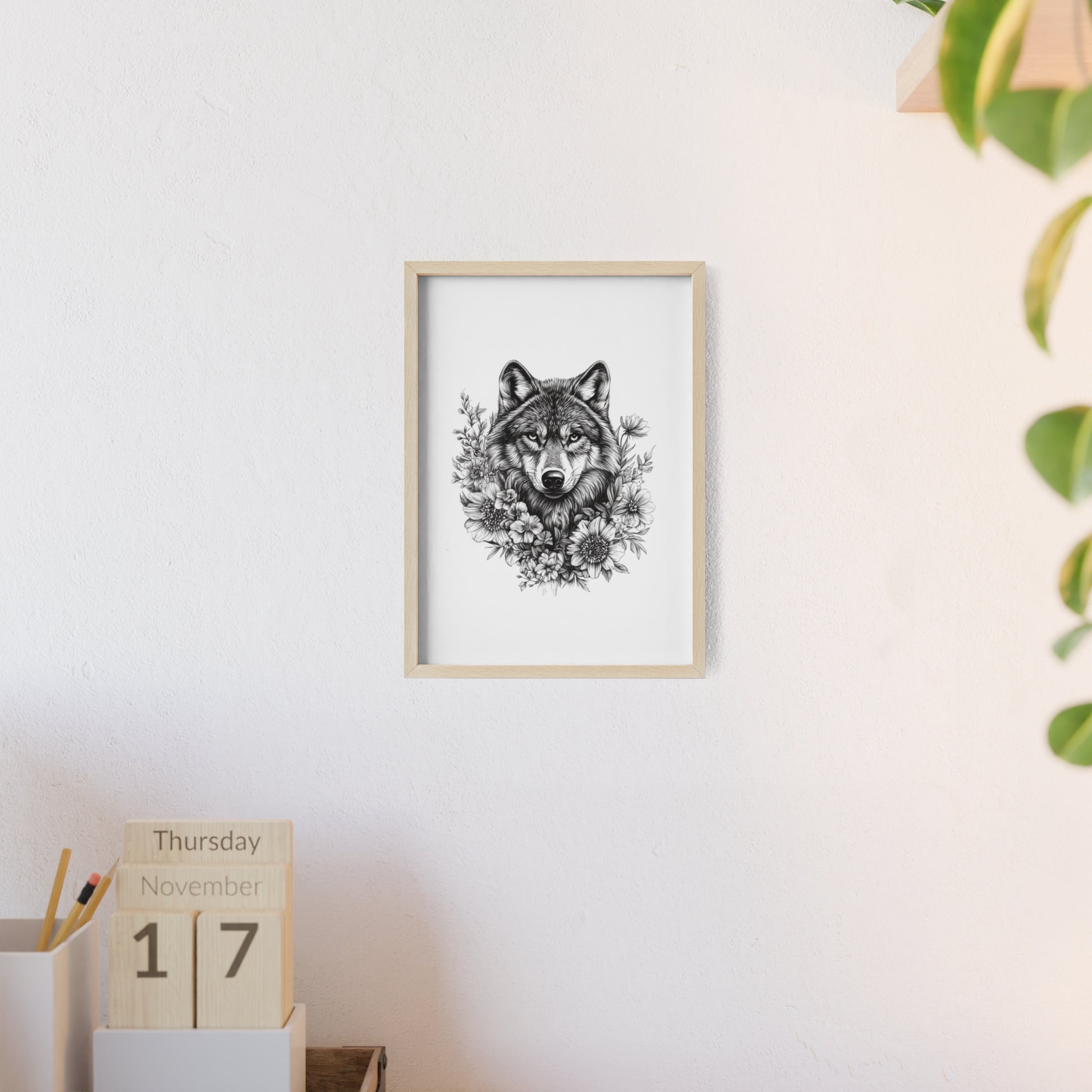 Dieses beeindruckende Poster vereint Wildheit und Schönheit in perfekter Balance: Ein majestätischer Wolf, umrahmt von zarten Blüten – ein Symbol für Stärke, Freiheit und innere Ruhe.