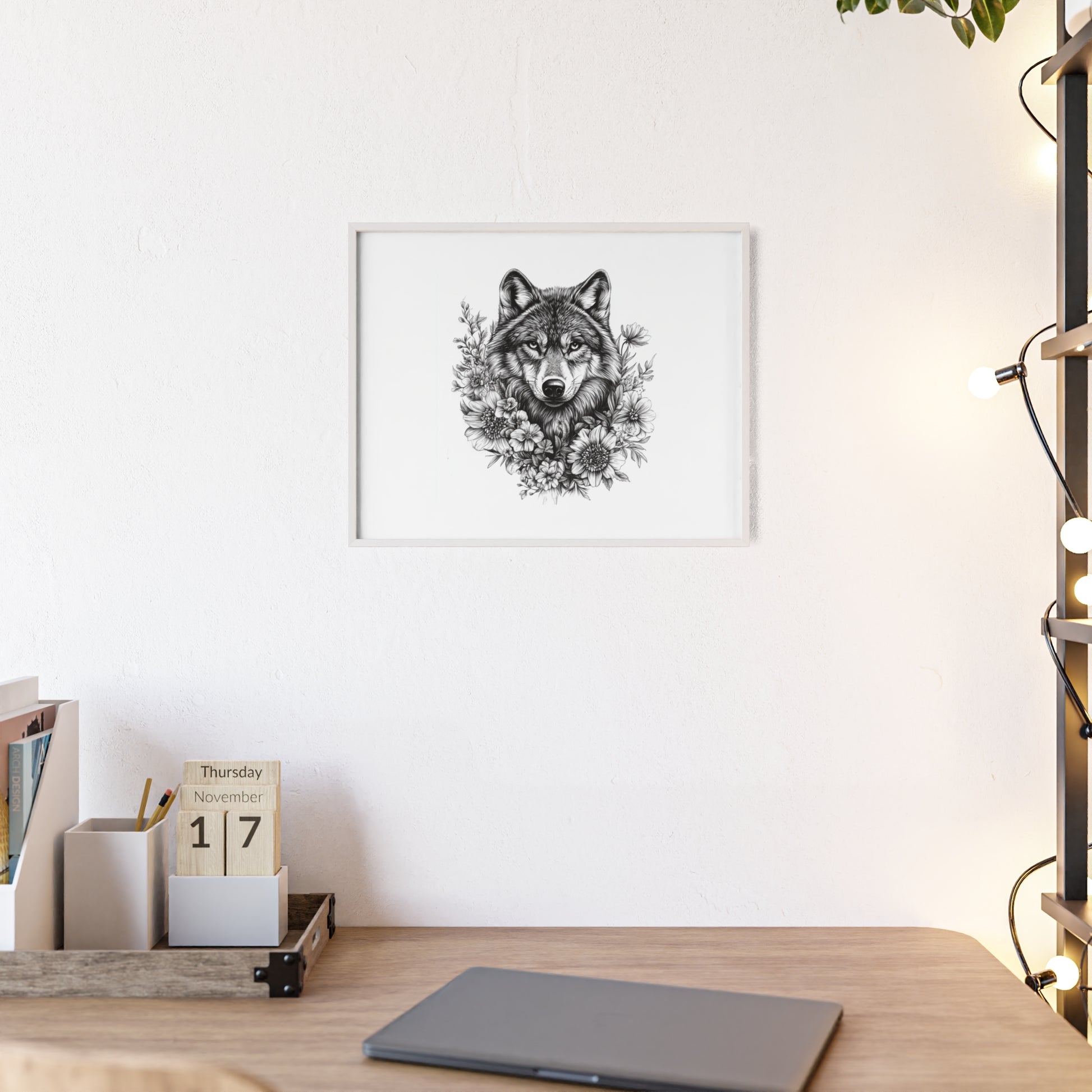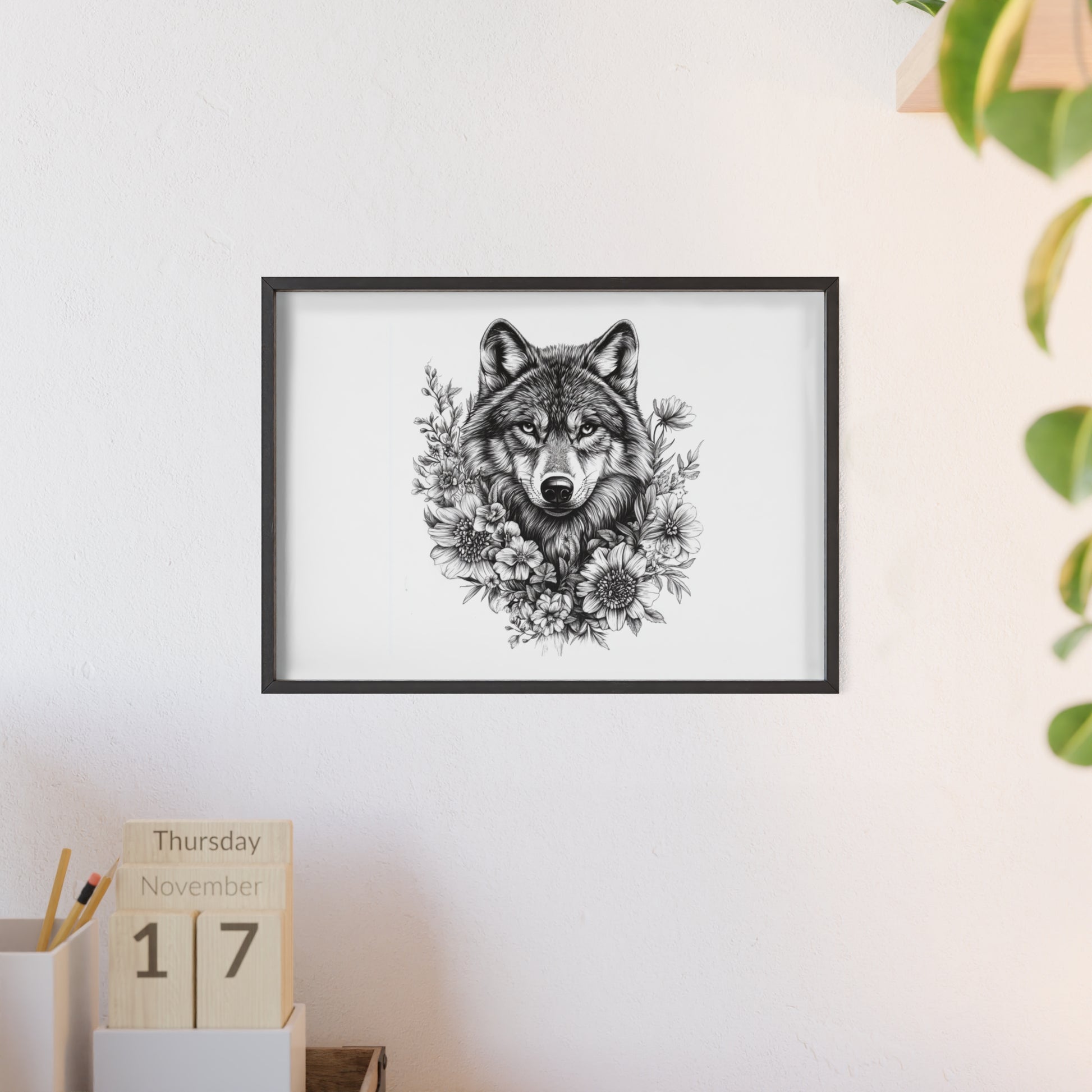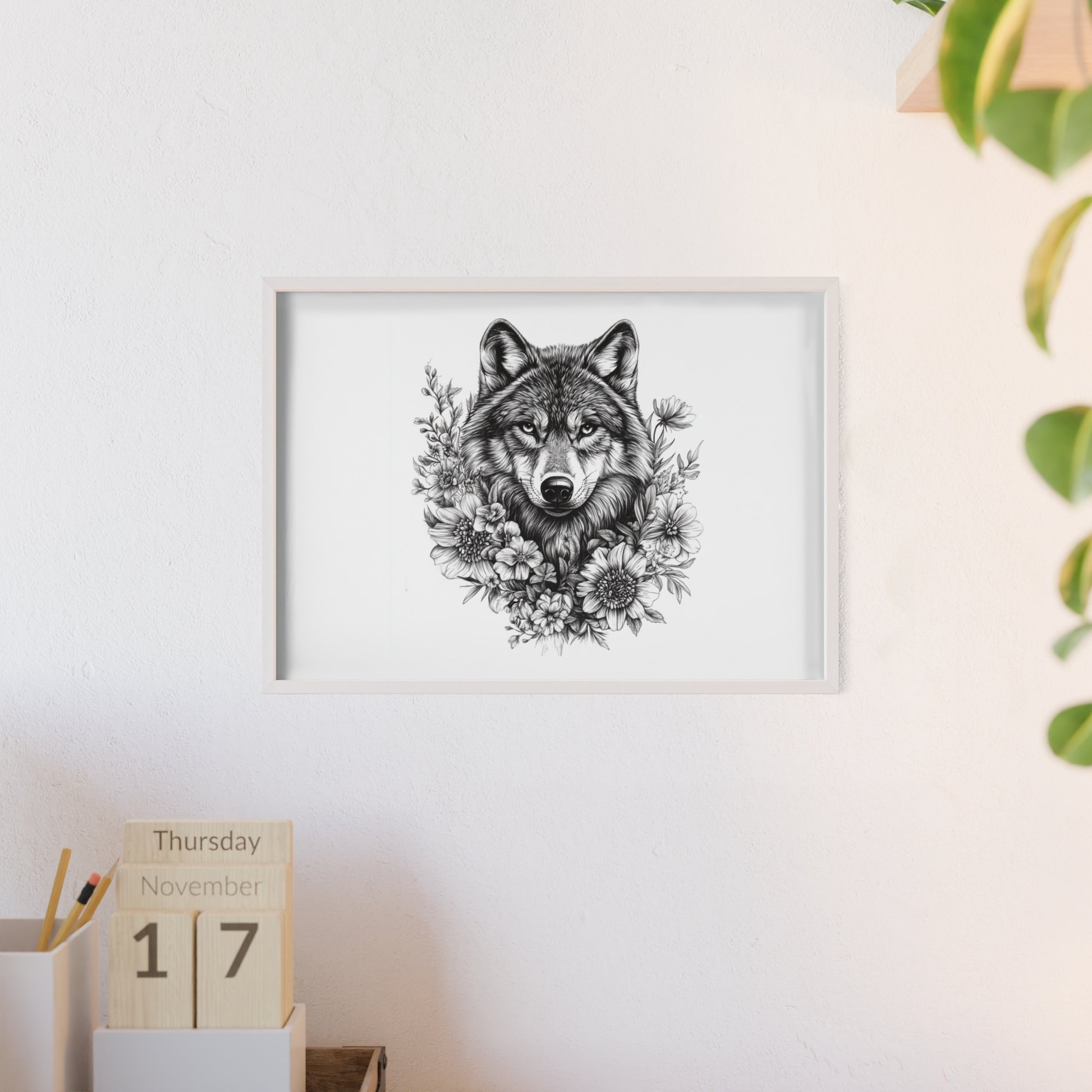 Dieses beeindruckende Poster vereint Wildheit und Schönheit in perfekter Balance: Ein majestätischer Wolf, umrahmt von zarten Blüten – ein Symbol für Stärke, Freiheit und innere Ruhe.