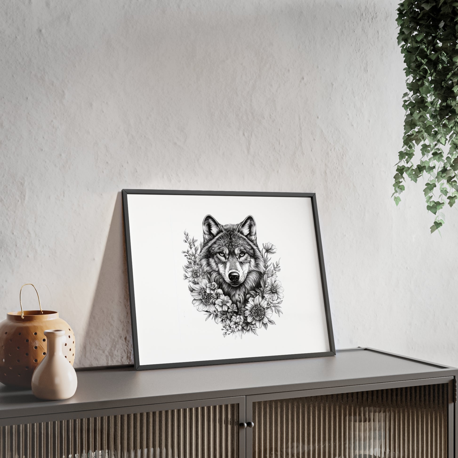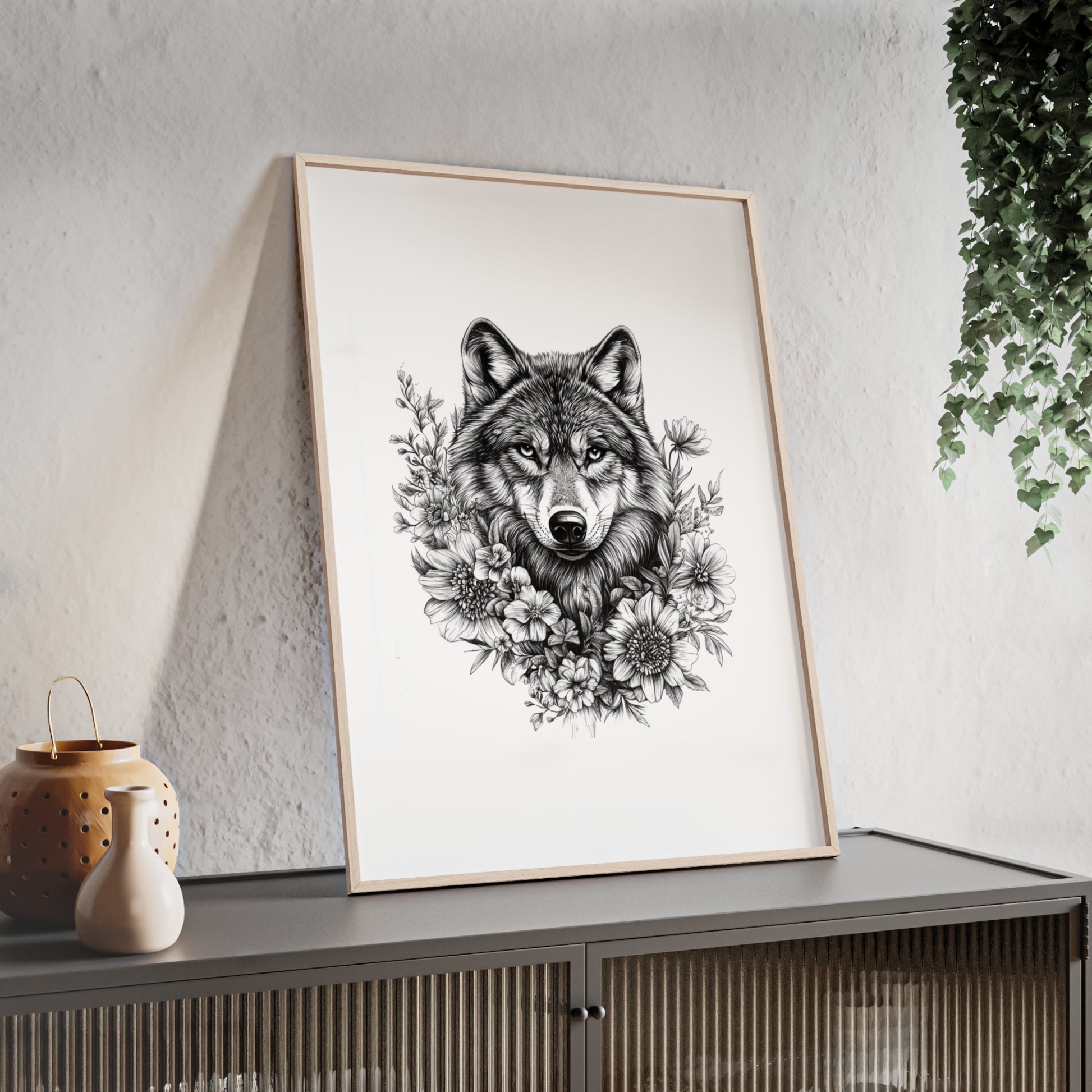 Die präzisen Linien und die feine Schwarz-Weiß-Illustration verleihen dem Kunstwerk eine tiefe Ausdruckskraft. Es bringt Eleganz, Stärke und Natürlichkeit in jeden Raum – perfekt für Tierliebhaber, Naturliebhaber oder alle, die die Sprache der Symbole lieben.